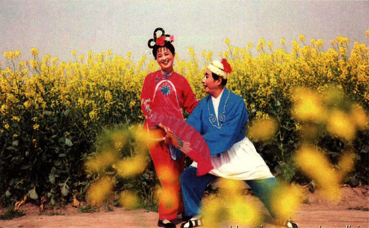 这种声腔结构便于记忆,无论唱多少段,反正每段是四句,每一句是四个小节。依照唱词的情、声、音、字等有机的结合,形成固定的板式(节奏型)以表达填词的规律,小旦、小丑可以调整每段唱词的内容以适合人物思想感情。动作不断变化,在“内窝花”“外窝花”走“8”字的基础上加入“左摆右摆”“前进后退”“探海”“劈岔”等大量的简洁动作,表演更富于审美价值。但任何表演程式和表演技巧又未脱离其调式和板式的简洁性特征。