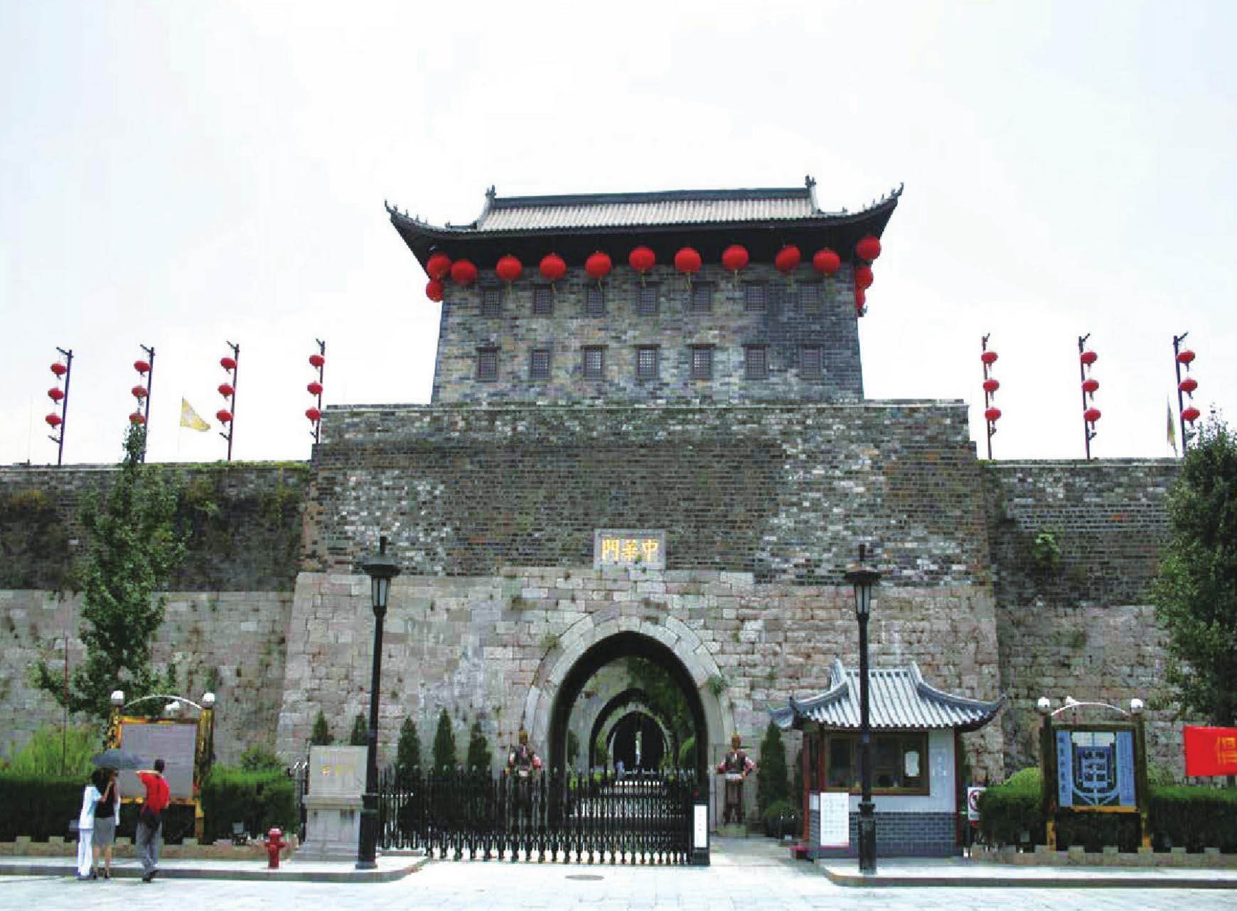 明代的南京城,东连钟山,西据石头,南贯秦淮,北带玄武,城周33.68公里,规模盛大,气势磅礴。元至正二十六年(1366年),也就是朱元璋称帝前两年,朱元璋就开始修筑城墙,营建皇宫。洪武元年(1368年),朱元璋在应天府登基,建元洪武,定都应天府。明代南京城墙的修筑从1366年一直延续到1386年,朱元璋用21年时间,修建了世界上最大的一座砖石城。南京城的修筑分为四个阶段:第一阶段,在钟山西南麓新筑宫城和改筑南唐以来的金陵城;第二阶段,向北拓宽旧城直到江边;第三阶段,建造聚宝门、三山门、通济门等主要城门,并新筑后湖城和各主要街道;第四阶段,建造外郭城。