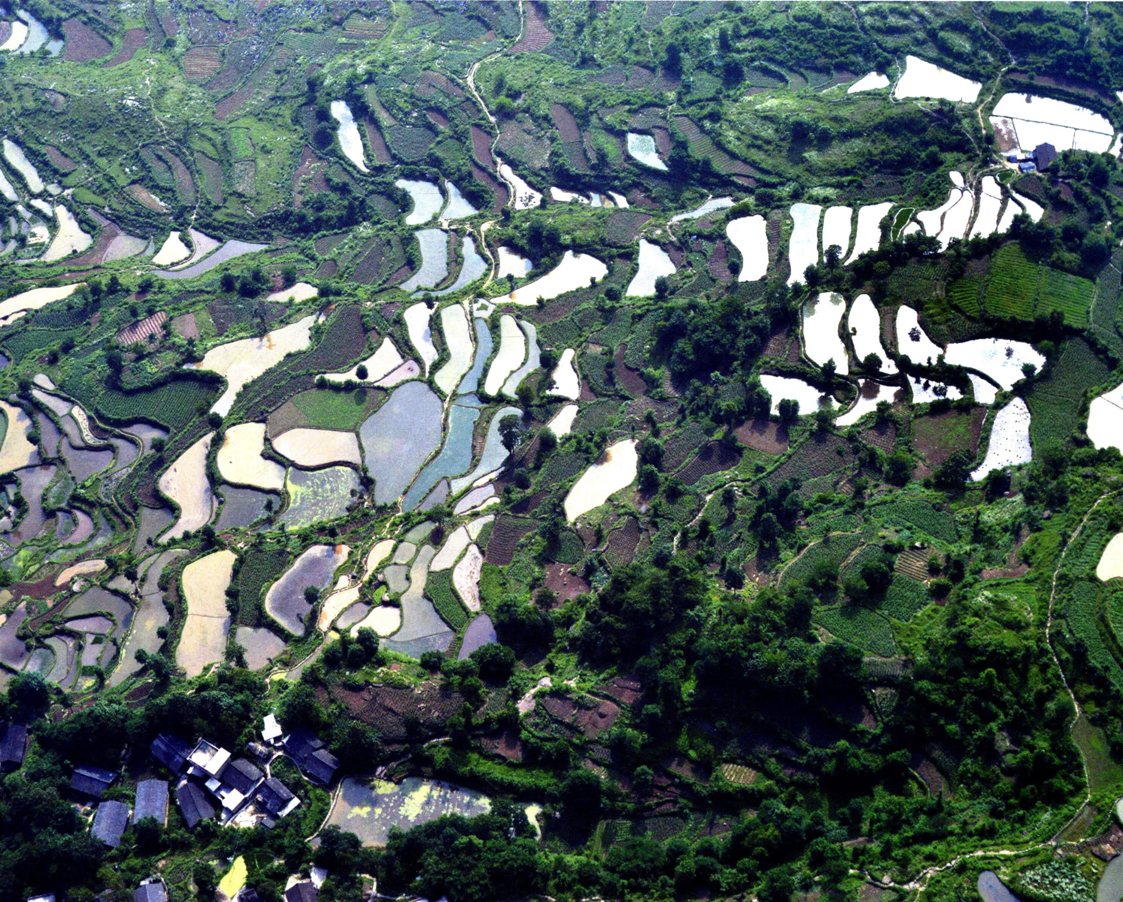 2013年6月,黄平古梯田调查工作组利用无人机对6处典型古梯田群实施了航空测量。本次无人机航空测量获取的数字正射影像图的分辨率达到0.16米,部分区域达到0.12米。