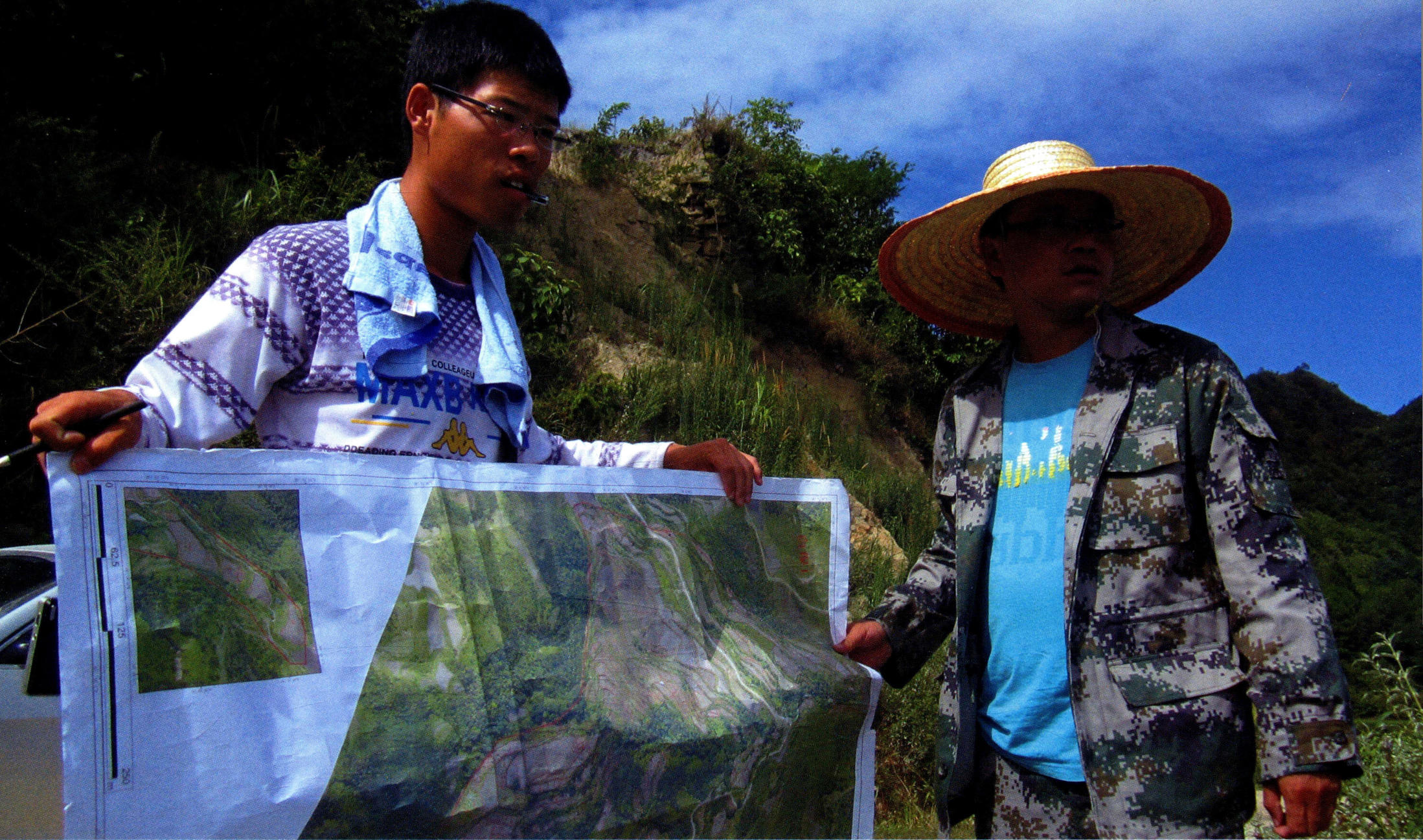 2013年9至12月,黄平古梯田调查工作组以遥感影像处理的初步结果为基础,对6个典型古梯田群区域进行了全面复核,现场收集相关照片资料,并按照调查方案要求,对田块的田坎类型,田块面积,田坎高度、长度和宽度等信息进行测量、采集和核实。