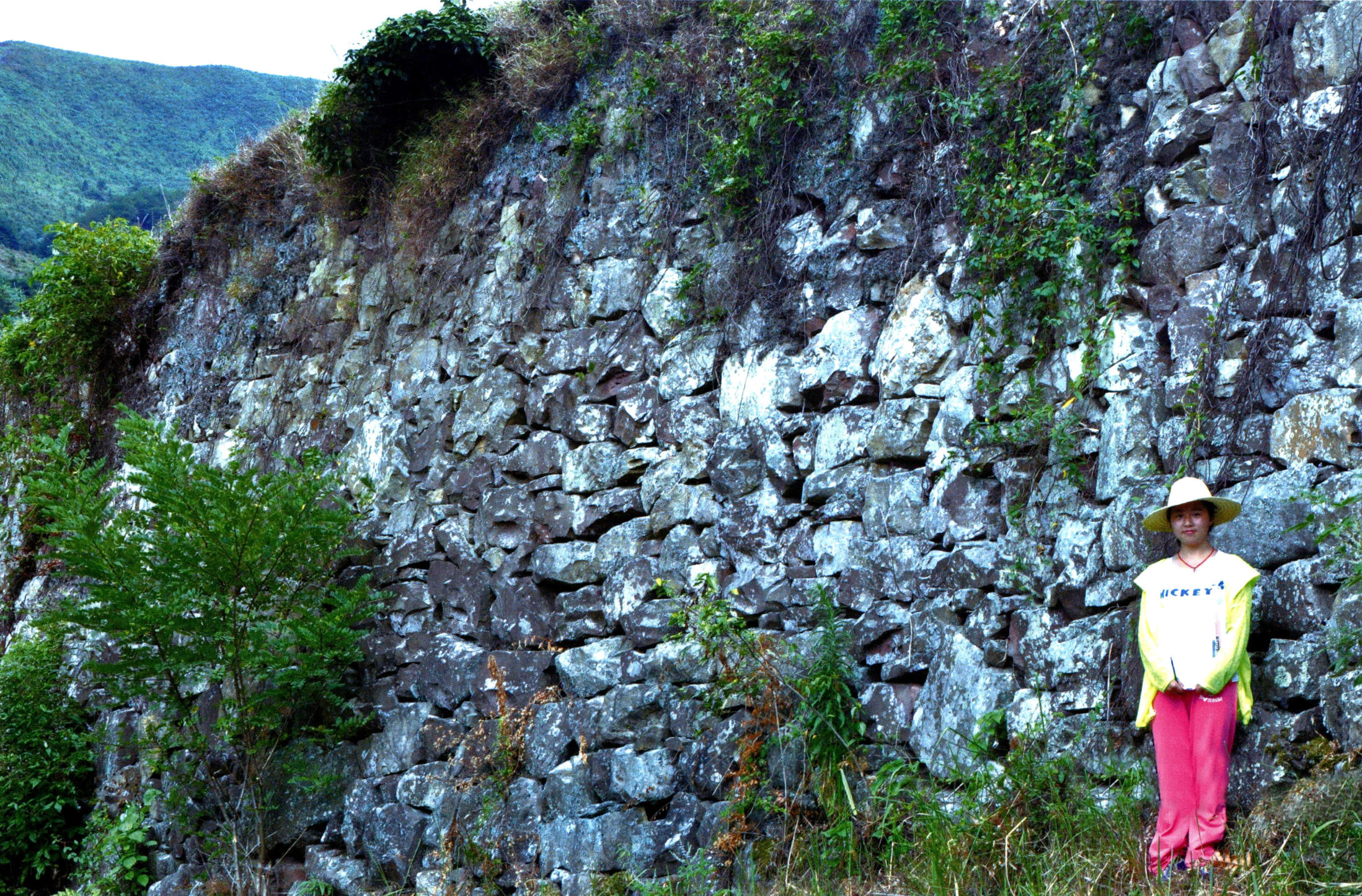 (注: 石坎高度为2米左右的黄飘古梯田)