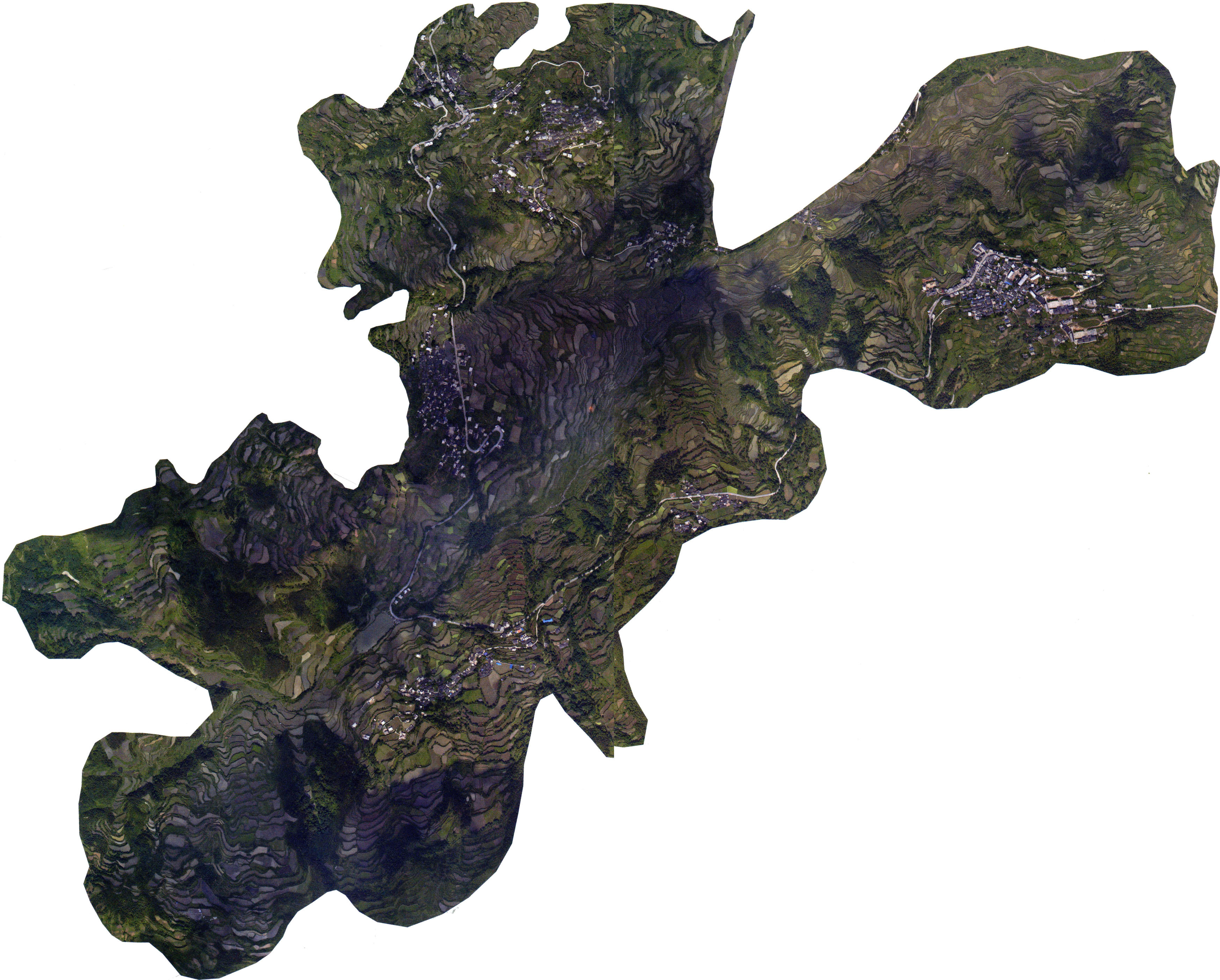 梯田群分布在海拔689~1219米之间,面积为6.54平方公里,梯田面积为2.17平方公里,占总面积的33.26%。