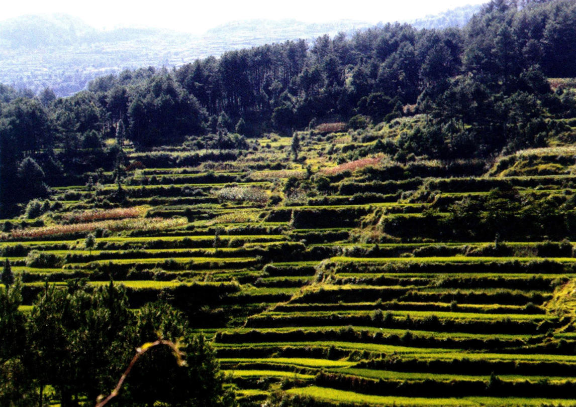 (注: 坪马古梯田群地势较为平坦开阔,自然坡度在15~20度左右。)