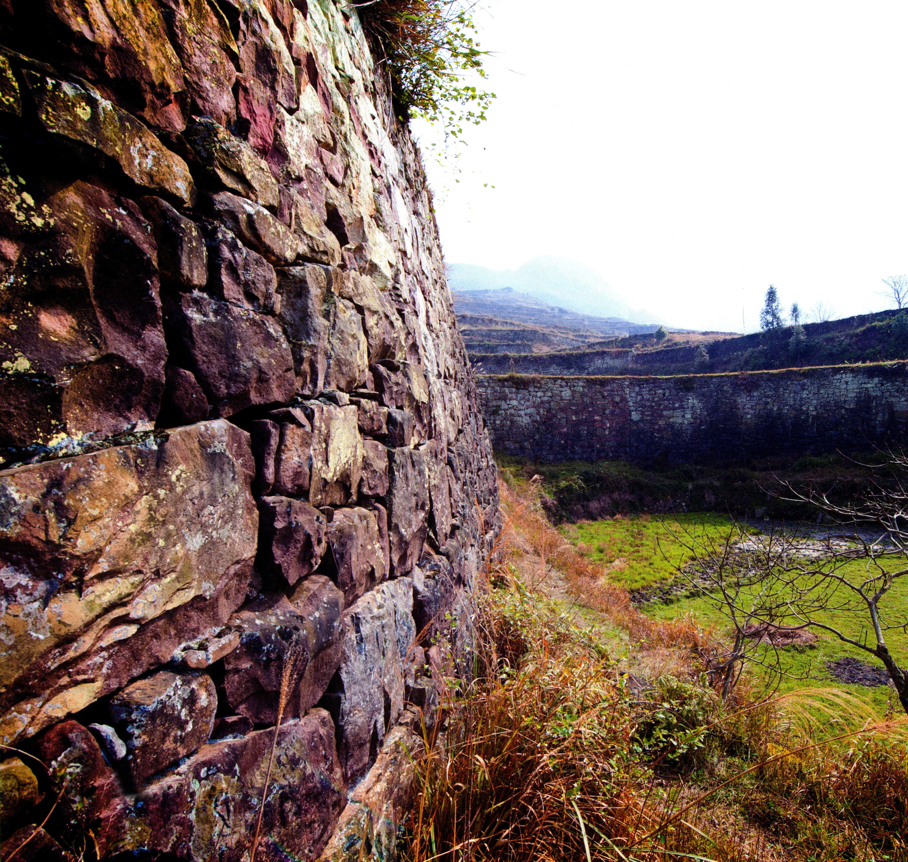 (注: 田坎均以红砂石垒砌而成,田坎最高处超过9.4米,平均高度约8米。)