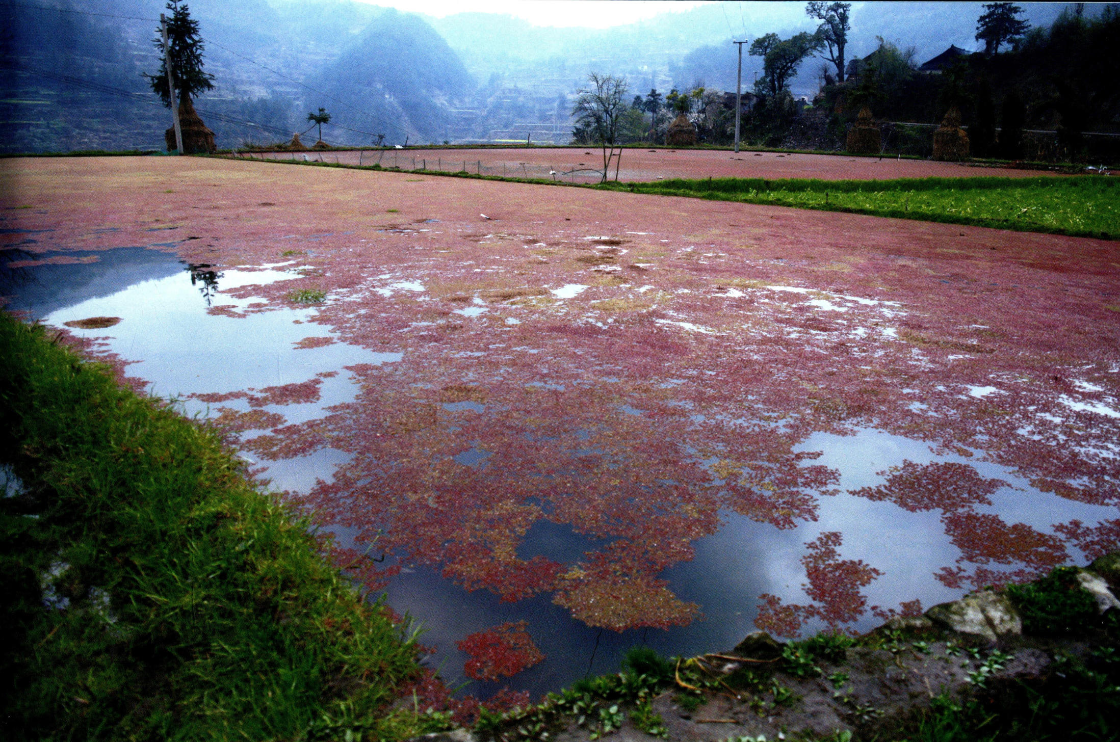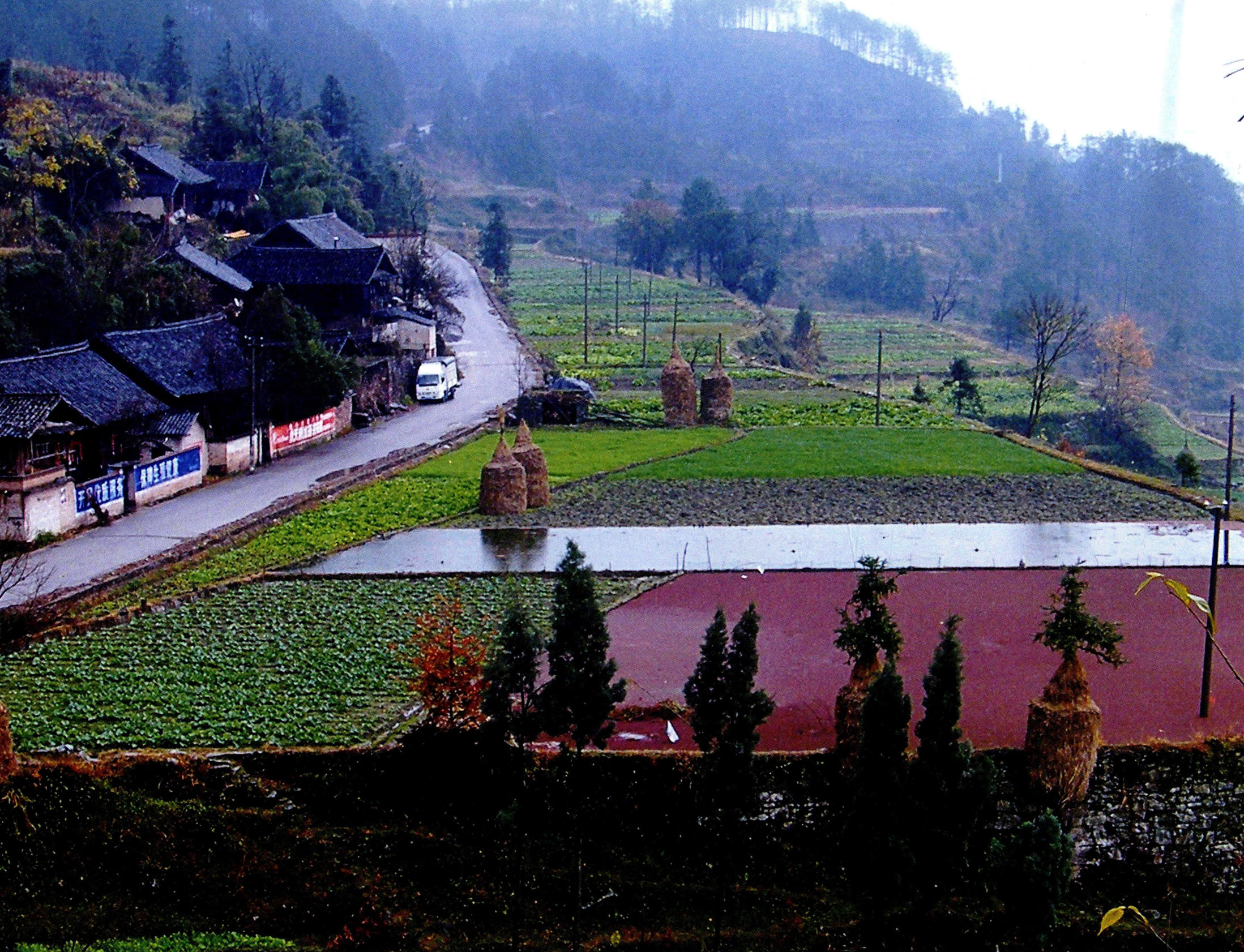 在黄平县翁坪乡小冷坪山下落坡寨的公路旁,有一块近500米长,南北走向、呈长条型的大丘田块。这块由多块小井田组成的25亩农田,是清朝和新中国两个时代修建的。南面面积较宽的部分大约是在清朝同治年间开始修造,北面稍微狭长的部分是上世纪70年代补造的。这块似乎一眼看不到头的大田被称为“两朝田”,在农村实行家庭联产承包责任制后,因随农户人口分配的份额又划成十余块,并以田埂分隔开来,由杨通胜等人承包耕种。