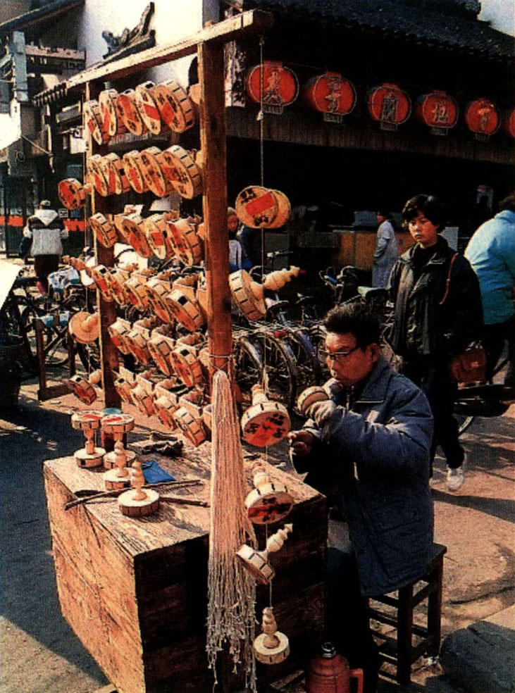 20世纪80年代南京街头艺人在制作和贩卖“空竹”