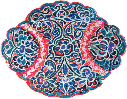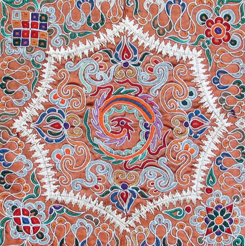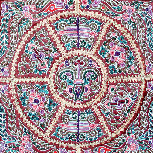 马尾是制作马尾绣的重要材料,首先要取3~5根马尾,用手工将白色丝线紧密地缠裹马尾,得到琴弦状的白色预制绣花线;其次是用预制好的绣花线在绘好图案的底布上盘绣图形线条;接下来是填绣,也就是选取各种彩色丝线对镶制好的图案按照通常的螺形绣、结绣、平绣、挑花、乱针、跳针等技法进行填绣。通过这种独特的工艺手法精心制作出来的马尾绣立体感极强,酷似精美的彩色浮雕。