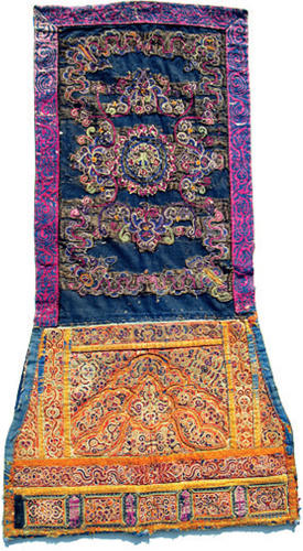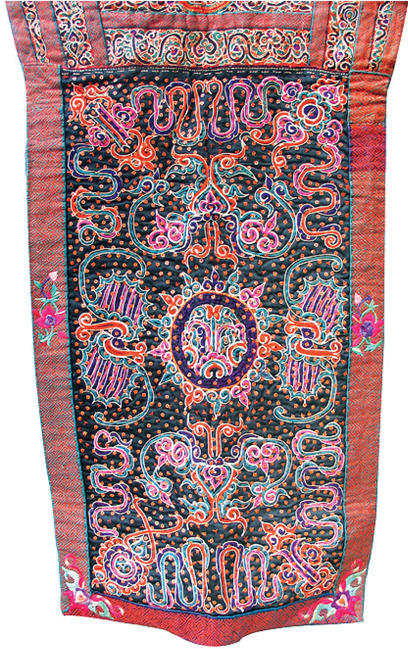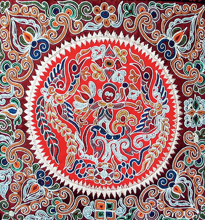 水族民间相传,很古的时候,太阳又毒又辣,把放在田边的一个水族孩子晒昏过去,这时飞来一只美丽的大蝴蝶,张开翅膀把阳光挡住,孩子在蝴蝶的保护下得救了。从此,水族妇女都要把蝴蝶绣在背扇上,保佑孩子健康成长。绣上“寿”字,是祈望孩子健康成长,长命百岁;绣上龙凤,是希望孩子将来成龙成凤,有出息;绣上鲤鱼、牡丹,是希望孩子吉祥如意,富贵腾达;绣上蜜蜂、石榴,是希望多子多福、勤劳发家。所有水族妇女绣制马尾绣背扇几乎都要在上面绣上龙、凤、鱼、蝴蝶和麒麟等能给人带来好运的吉祥图案,用这些吉祥的图案来寄托水族家庭对子女的期望。