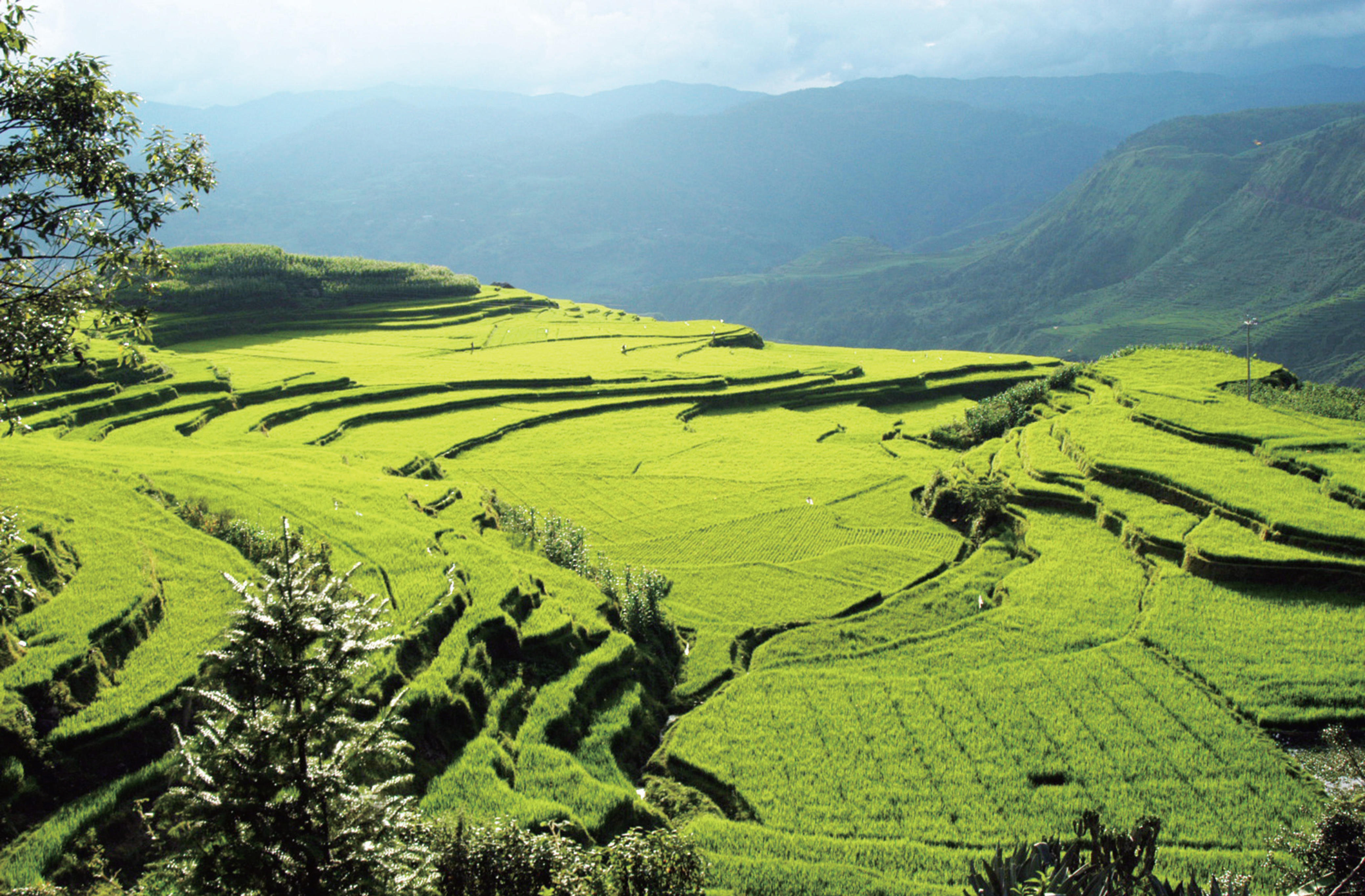 威宁白族地区高山农作物交错栽种,构成一幅美丽的图画