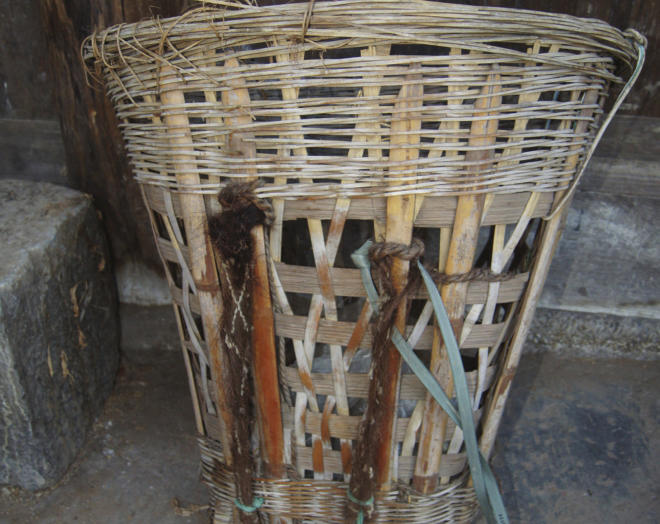 竹器,主要有撮箕、背箩、圆箩、马箩、囤箩、篾篼、筛、簸箕等,多数男子均能加工。