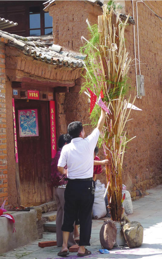 毕节、大方、织金等地白族有供“姑妈坛”和庆天王坛的信仰。“姑妈坛”又称“灶化坛”。在家长居室的墙上,悬挂一块小木板,上置小木箱、小篾箩或小布袋,内装碎银、谷米、盐茶和已故老人的头发、手脚指甲等物。每年除夕杀鸡供奉,称为一年一供应;三年期满,择时杀猪庆奉,称三年一庆。供、庆之目的,是为祈求丰年、全家平安。这种信仰,至今沿袭。
