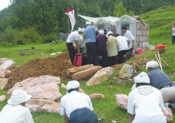 办丧事,在外面落气死亡的人,不能抬回堂屋停放入棺。要查歌诀是否犯重丧和冲属相。若犯重丧,堂中要挂红绸或棺上吊一只鸡和小型棺一口,然后把它埋在送殡路上。属相相冲,要回避送殡。造墓立碑也要查看歌诀,不能与死者坟向相冲。
