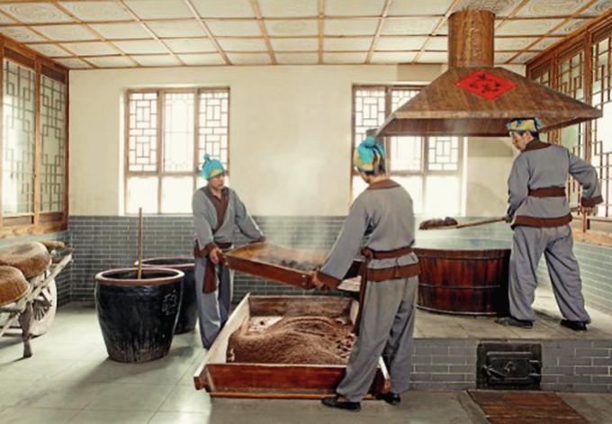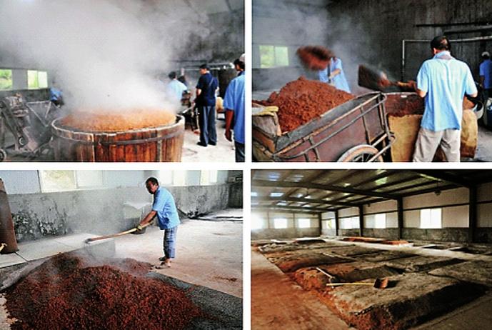 中国传统酿造技术的精粹大多集中地反映在酿酒、制醋、做酱的技艺中。从古至今,中国的酒、醋、酱就有自己的特色,在世界上独树一帜。爱喝酒的,特别是喝过许多世界名酒的朋友应该知道,无论是中国的黄酒,还是白酒都与西方的葡萄酒、威士忌、白兰地、金酒、伏特加等不一样。不仅口感不同,呈香也不一样。这是因为酿造的技艺有很大差异。中国传统酿造技艺的最大特色是使用了酒曲,而且强调曲是酿酒工艺中的“骨”,即灵魂。用现代的科学术语来表达,酒曲是多菌多酶的生物制品,它实际上是专职培养、驯化霉菌的,用于优化、催化发酵反应的特制试剂。中国先民发明酒曲,通过它来筛选酿造中有益微生物的种群,驯化、培育这些优良菌系,从而保障酿酒过程是优良的菌系在帮助完成发酵,最终获得高质量的酒。中国传统酿造技艺的另一个特色是摸索出了一整套适宜制曲、酿酒的控温、控湿及创造最佳酿造氛围的技术(包括环境)手段。应用这些技术手段的实质是为酿造有益霉菌创造一个正常繁衍的环境,使发酵过程处于掌控之中。从制曲到酿造,中国先民都是在与霉菌——多种微生物打交道,无形之中积累了与霉菌和谐相处、相互利用的许多经验。中国酒的酿造正因为使用了酒曲,让多种有益霉菌参与了发酵过程,它们就各显其能,有的将淀粉分解为单糖,有的将蛋白质分解为氨基酸,有的分解脂肪为多元醇,总之让中国的发酵原汁酒具有丰富的构成而独具特色、口感醇香。