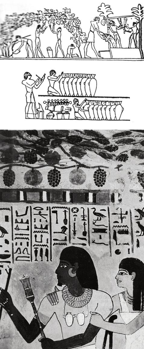 (注: 古埃及壁画:3500年前的葡萄酒技术解示(壁画出自古城底比斯第18王朝统治者森纽法墓))