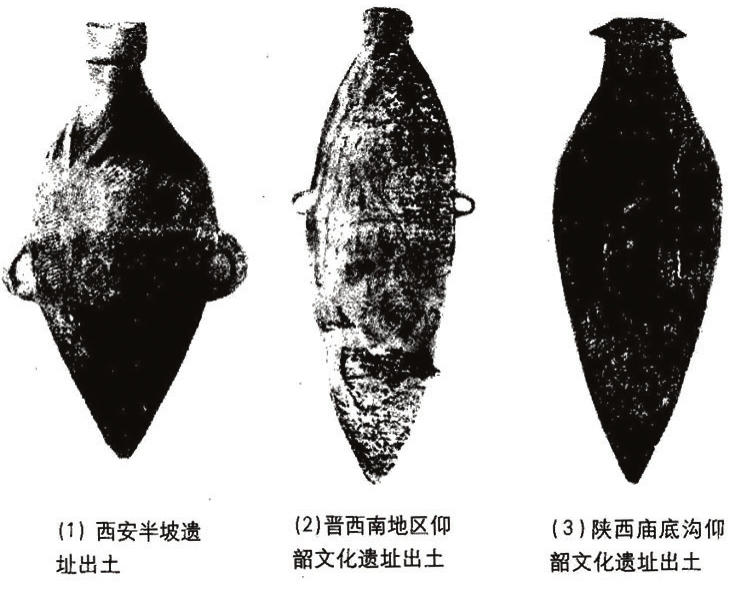 (注: 仰韶文化遗址出土的小口尖底瓮)