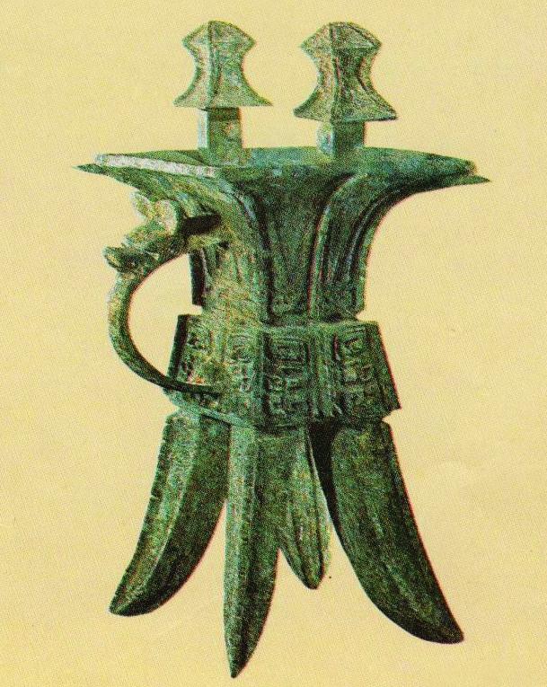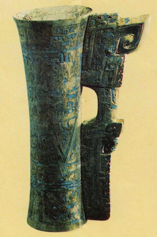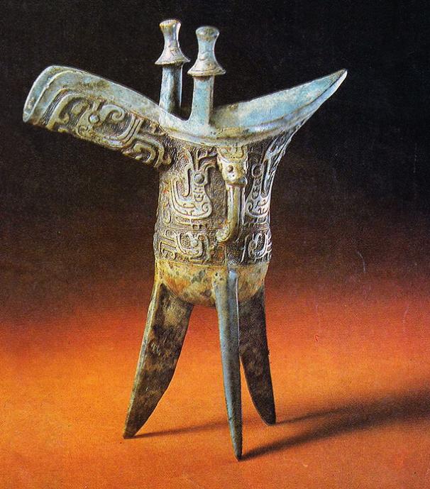 1976年从安阳殷墟发掘的妇好墓出土的440多件青铜器,有150多件是酒器,约占三分之一,觚、爵就达到90余件。商代晚期,青铜酒器的品种和数量之多,在世界古代史中也是少见的。而且出土的酒器多是配套的,如一角二斝,一觚二觯,一卣二爵。最简单的是以爵、觚、斝合成一组,爵是三足有流的杯,觚是容酒器,斝是灌酒器,在这基础上扩大发展,增添了盉、尊、卣、壶、罍等中型或大型的饮酒器和容酒器,此外尚有更高级的方彝、兜觥和牺尊等容酒器。酒器的品种和数量之多,充分展示了商代奴隶主贵族沉没于酒的历史镜头,同时也反映了商代农业生产的进步和发展。1953年和1958年在河南安阳大司空村共发掘了217座墓,无论是中型墓,还是小型墓几乎都出土了觚、爵。这说明殷代普通平民墓中觚、爵也是不可少的殉葬品,确实是富者铜觚铜爵,贫者陶觚陶爵,由此可见殷人嗜酒之一斑。