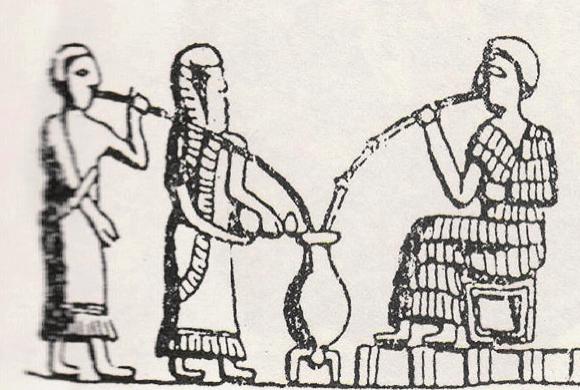 (注: 用吸管饮酒的叙利亚人(古代壁画))