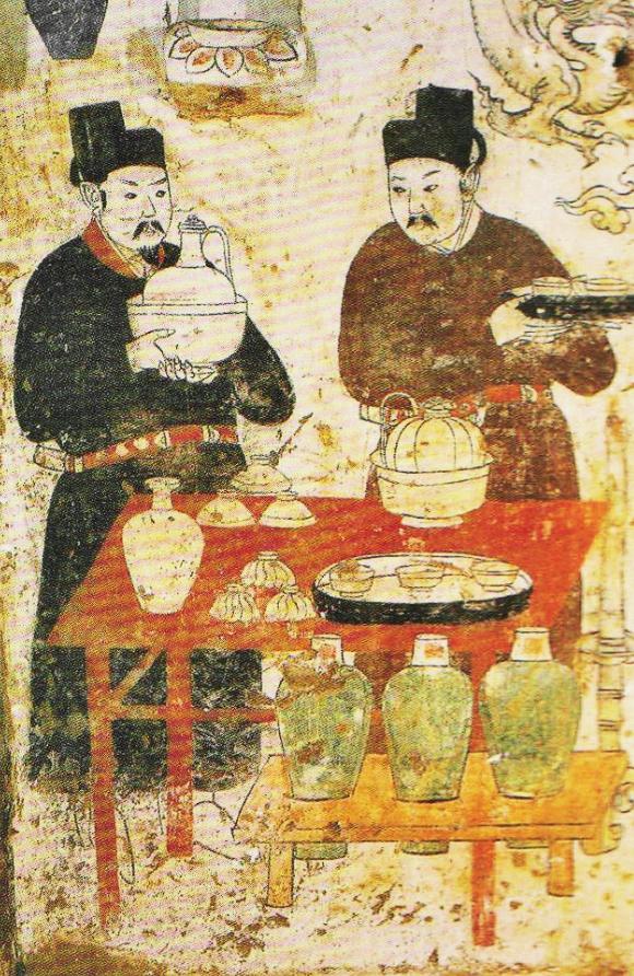 (注: 河北宣化辽墓出土的备酒图(壁画))