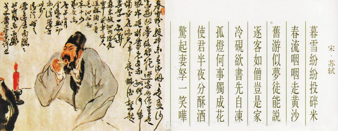 (注: 国画:苏轼在品尝友人送来的酒,并赋诗一首。)