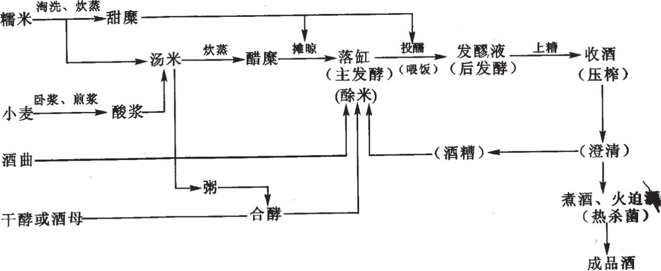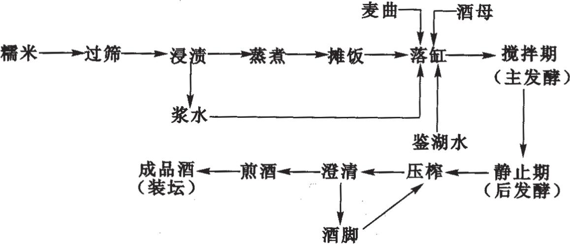 (注: 近代绍兴元红酒的酿酒工艺流程)