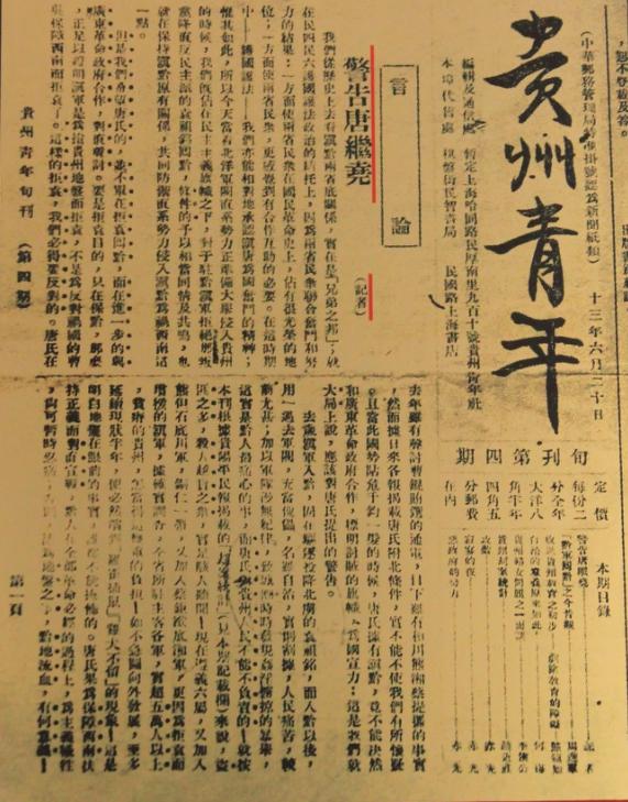 1924年5月10日,由周逸群起草的《贵州青年社发行旬刊之宣言》发表了。《宣言》开头的第一句话就说:“可怜的贵州,推演到今天,真是黑暗达于极点了!”接着,《宣言》简明地表述了创刊的宗旨及主张: