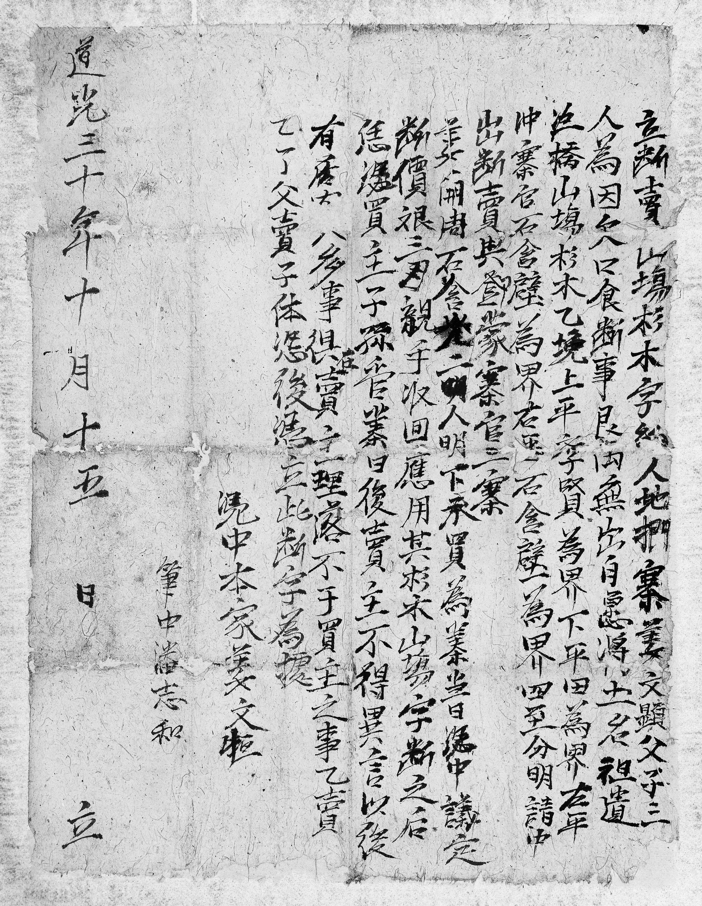 姜文顯父子三人斷賣山場杉木字約(道光三十年十月十五日) LP-120-3