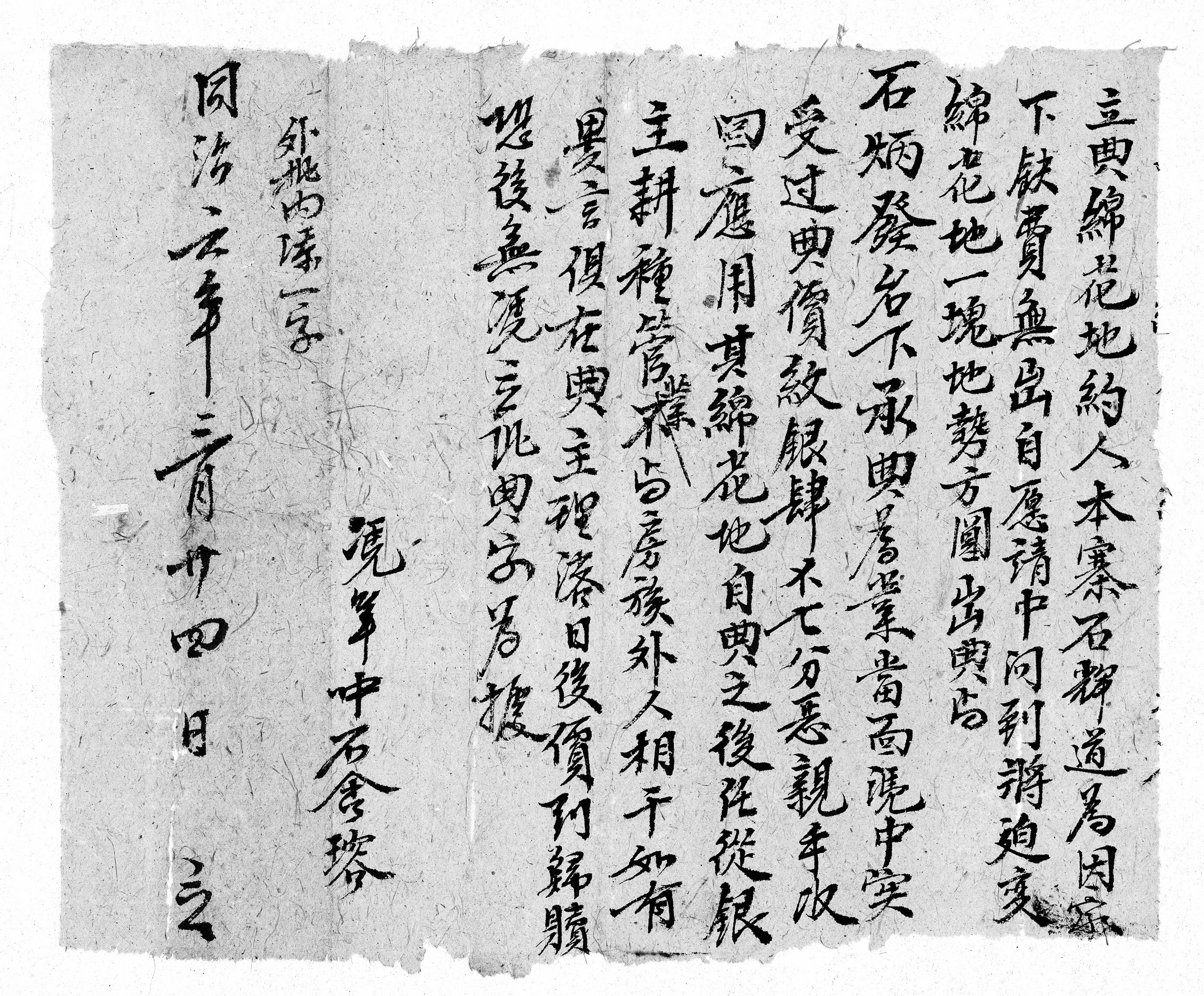 石非道斷賣棉花地字約(同治五年七月初八日) LP-120-10