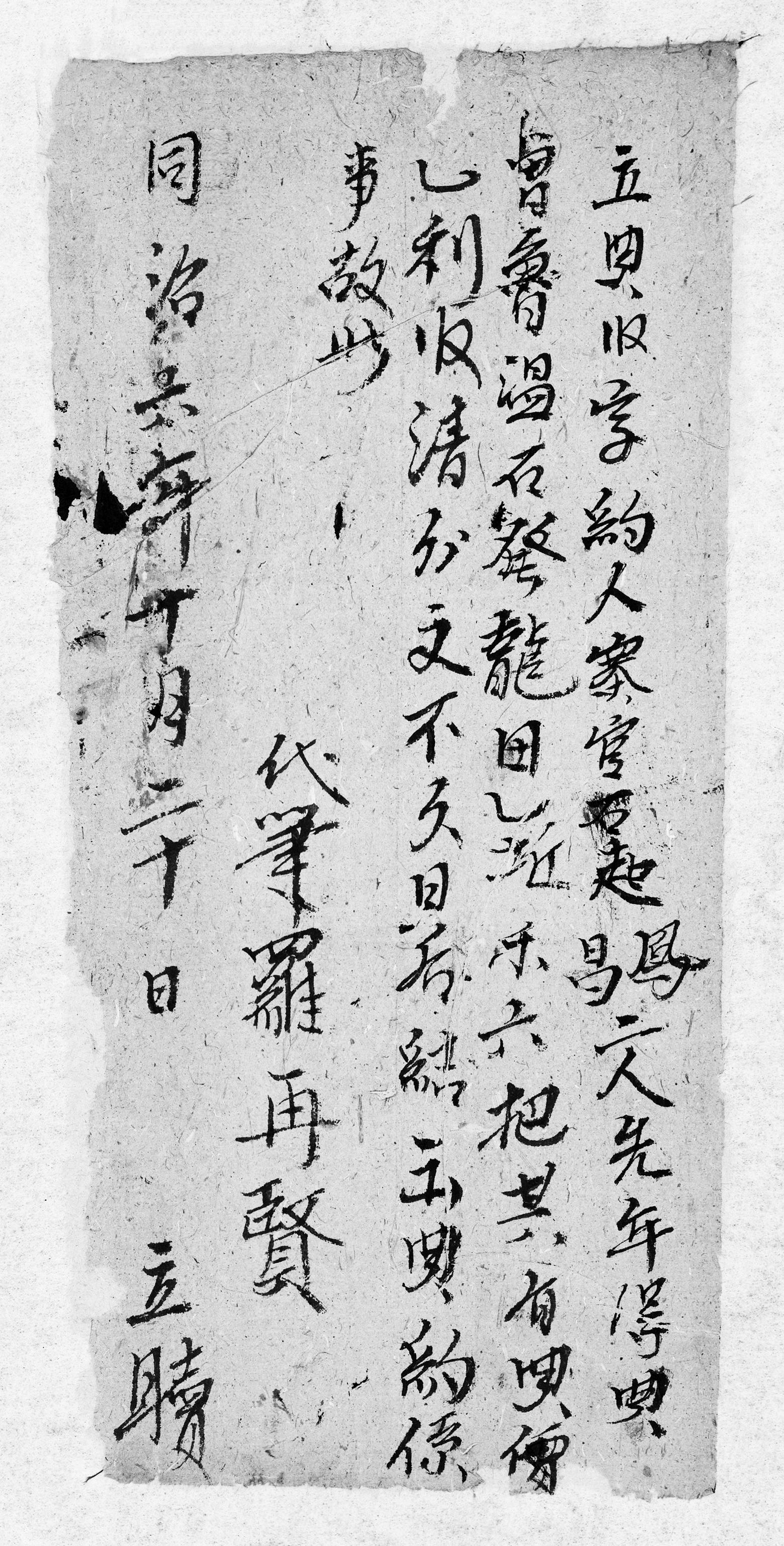 龍銀保斷賣田字(同治九年八月十七日) LP-120-21