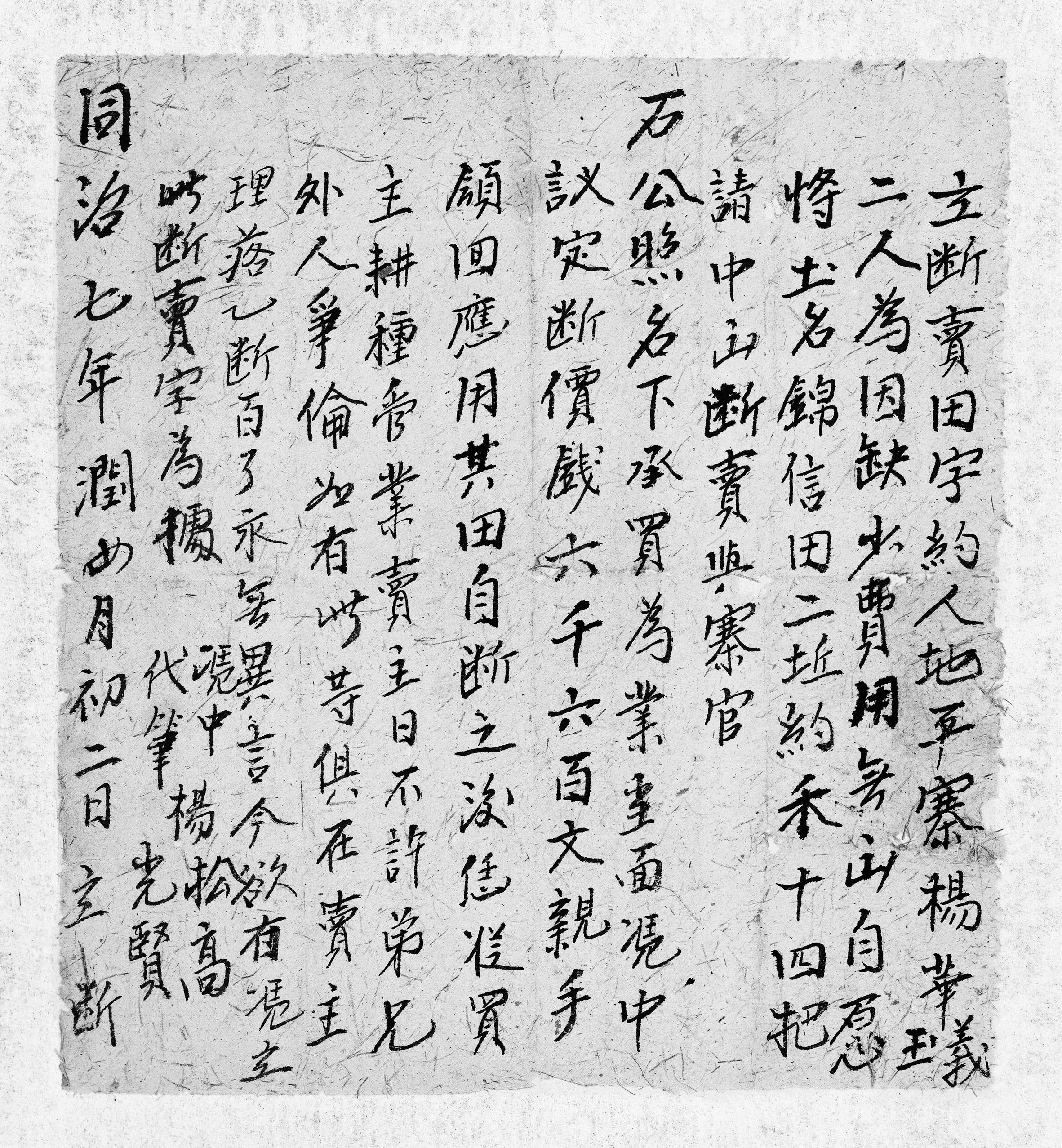 楊華義、楊華玉二人斷賣田字約(同治七年閏四月初二日) LP-120-16