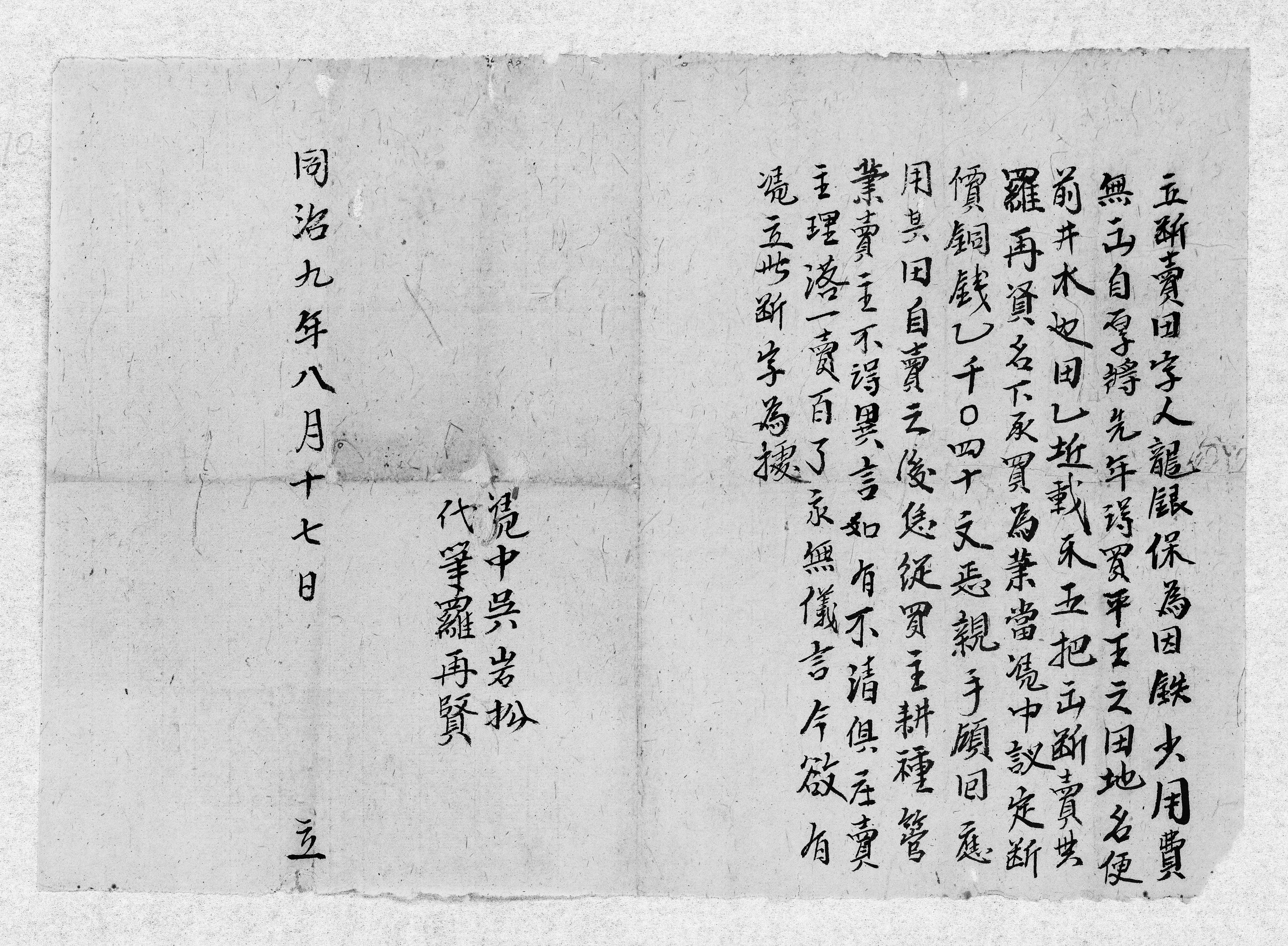 龍銀保斷賣田字(同治九年八月十七日) LP-120-21