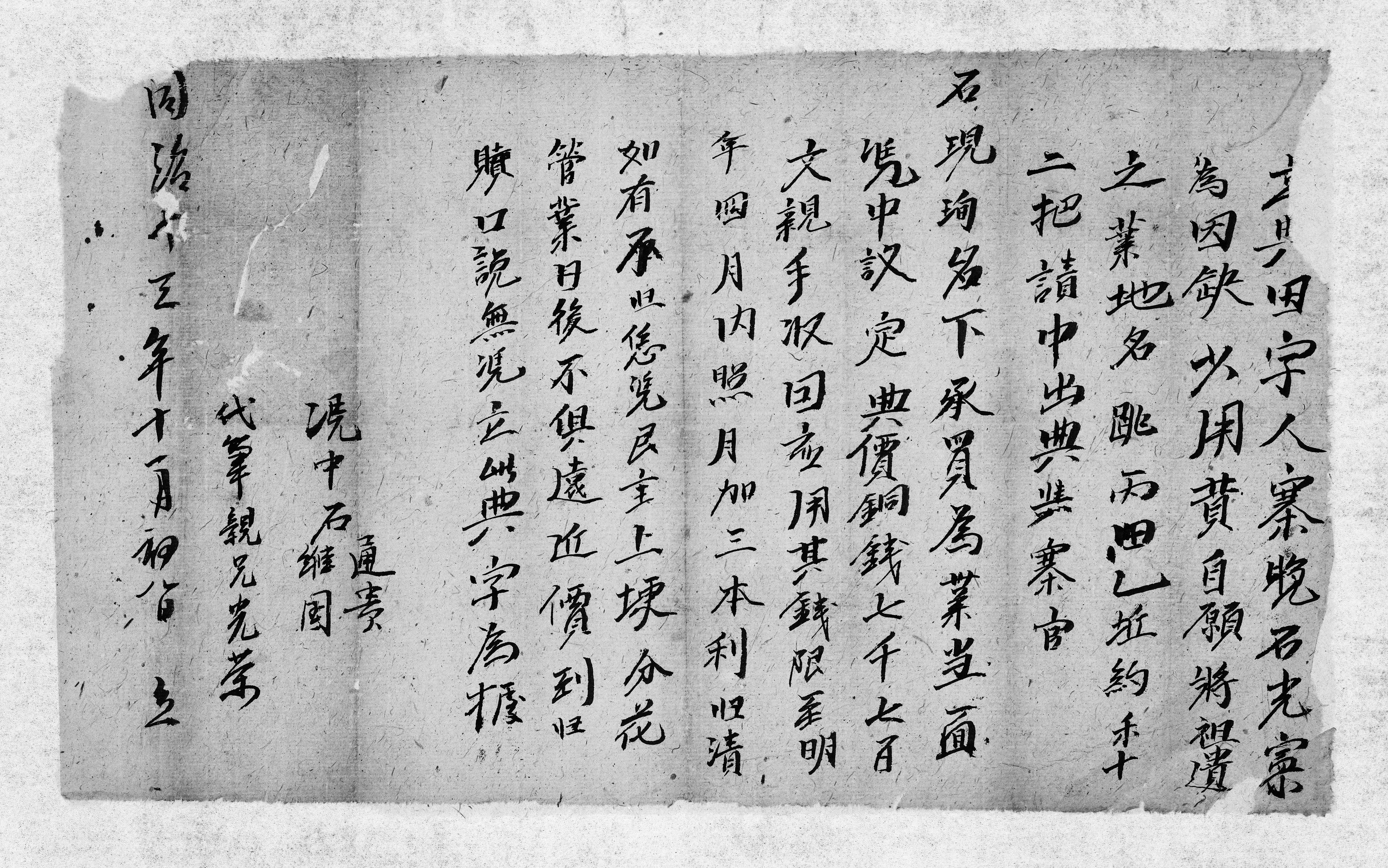 石氏乃出元斷賣田字約(同治十一年七月十七日) LP-121-17