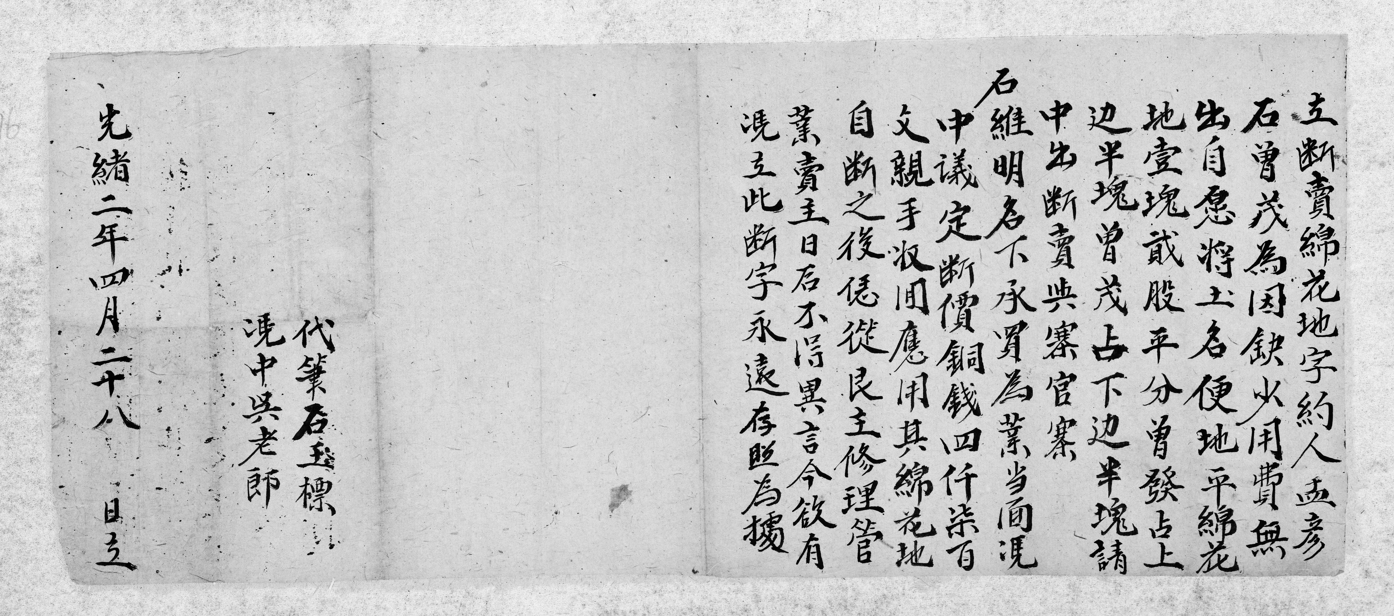 石開清斷賣棉花地字(光緒二十年七月初六日) LP-120-56