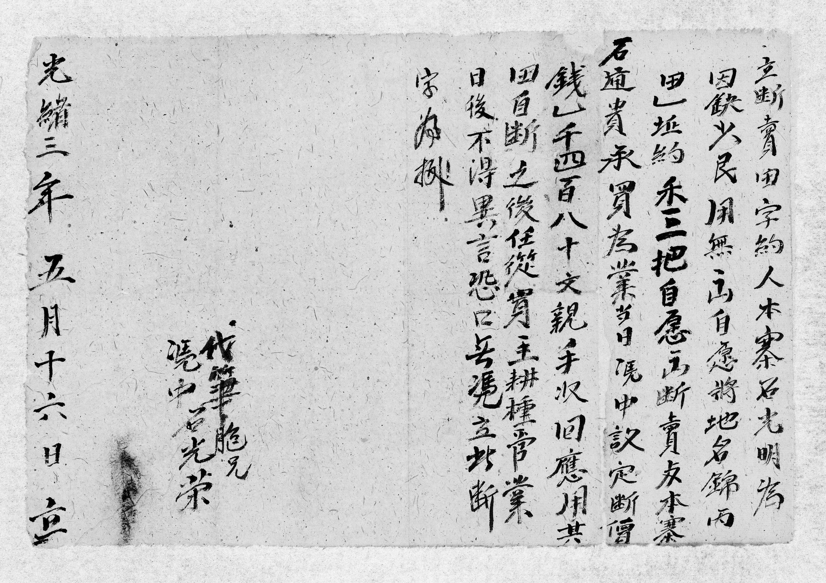 石光明斷賣田字約(光緒三年五月十六日) LP-120-31