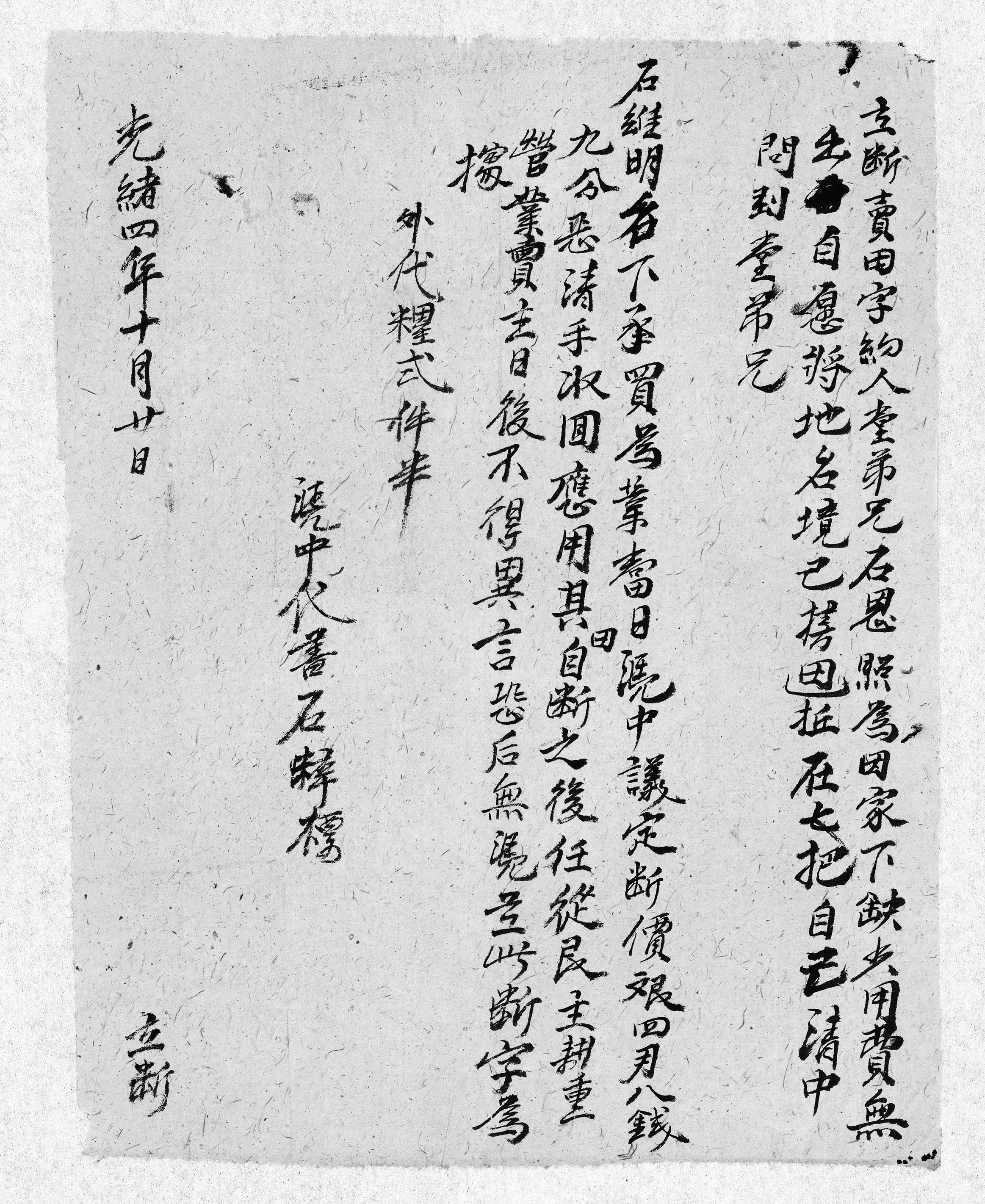 石恩照斷賣田字約(光緒四年十月二十日) LP-120-34