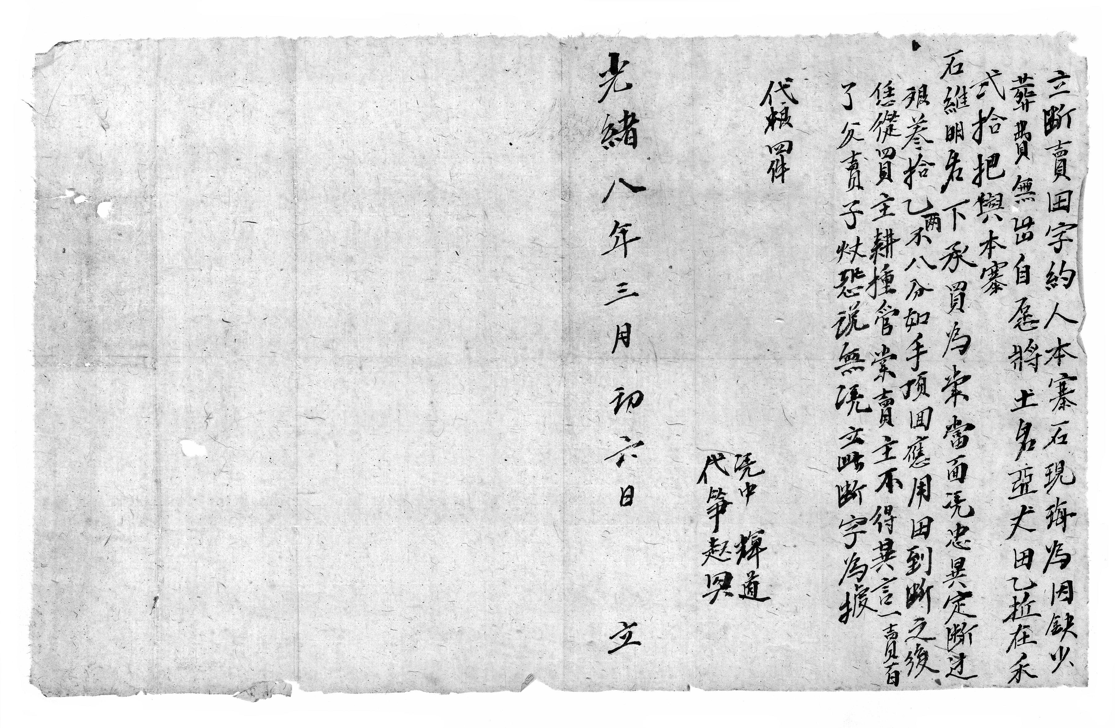 石現珻斷賣田字約(光緒八年三月初六日) LP-120-39