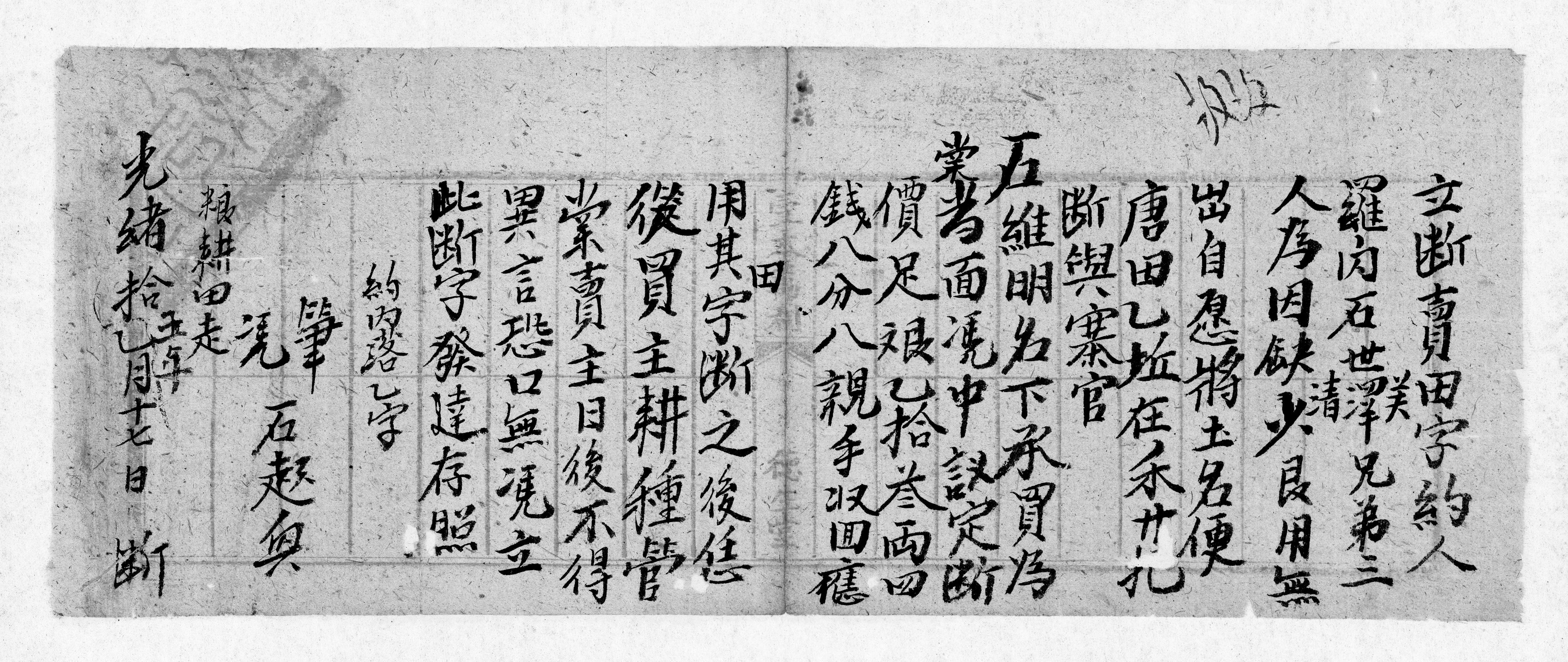 石光明斷賣田字約(光緒三年五月十六日) LP-120-31