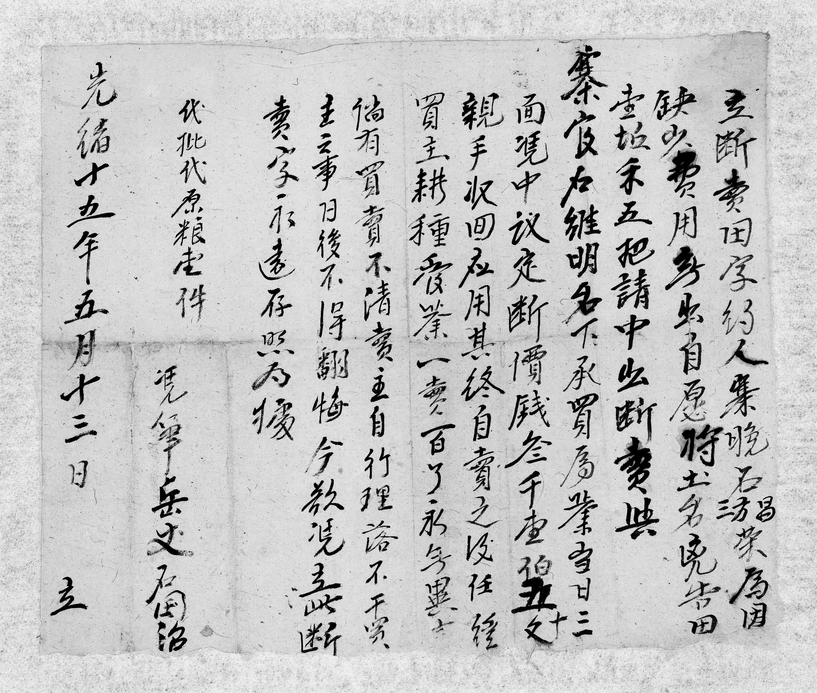 石光明斷賣田字約(光緒三年五月十六日) LP-120-31