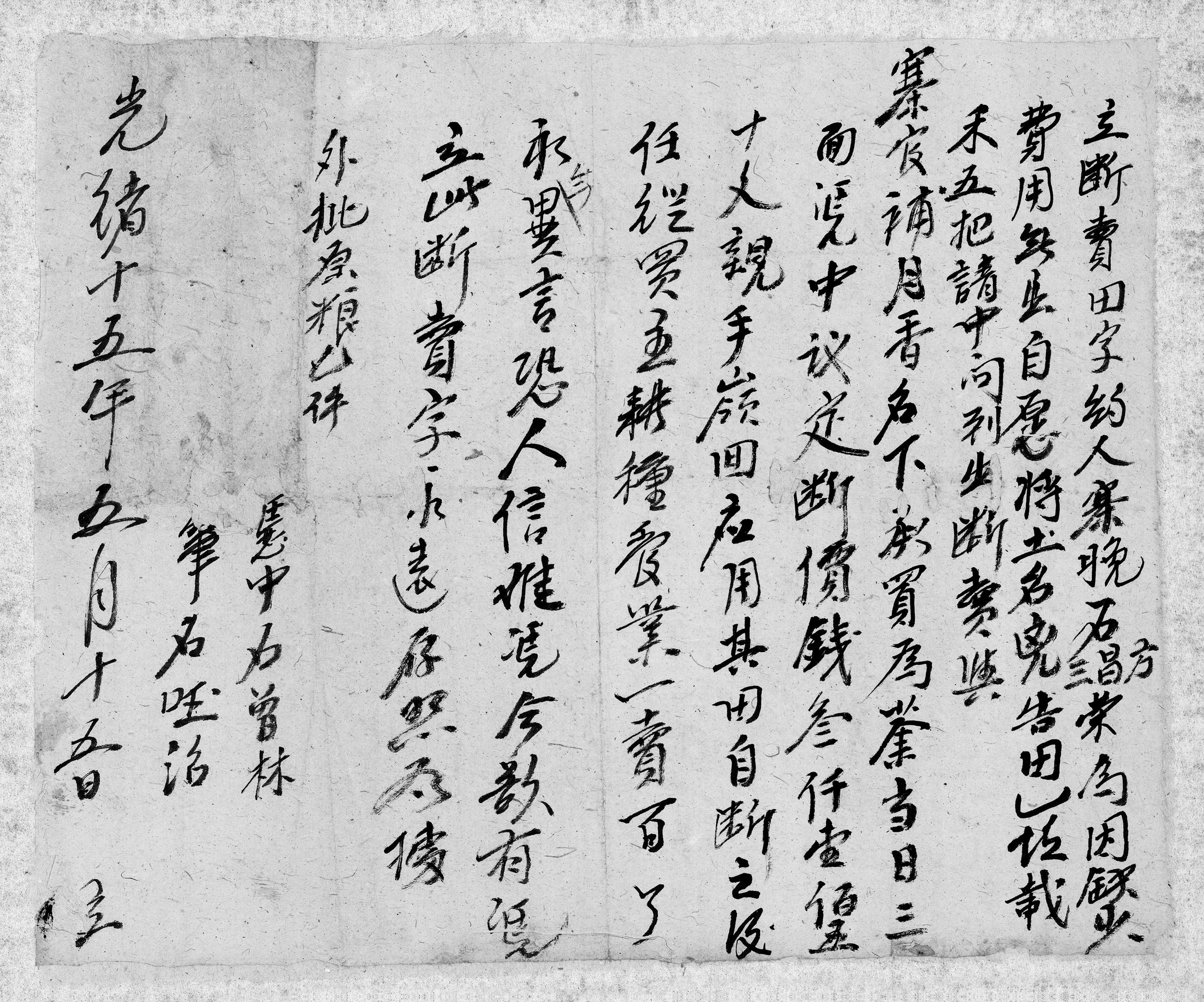 石光明斷賣田字約(光緒三年五月十六日) LP-120-31