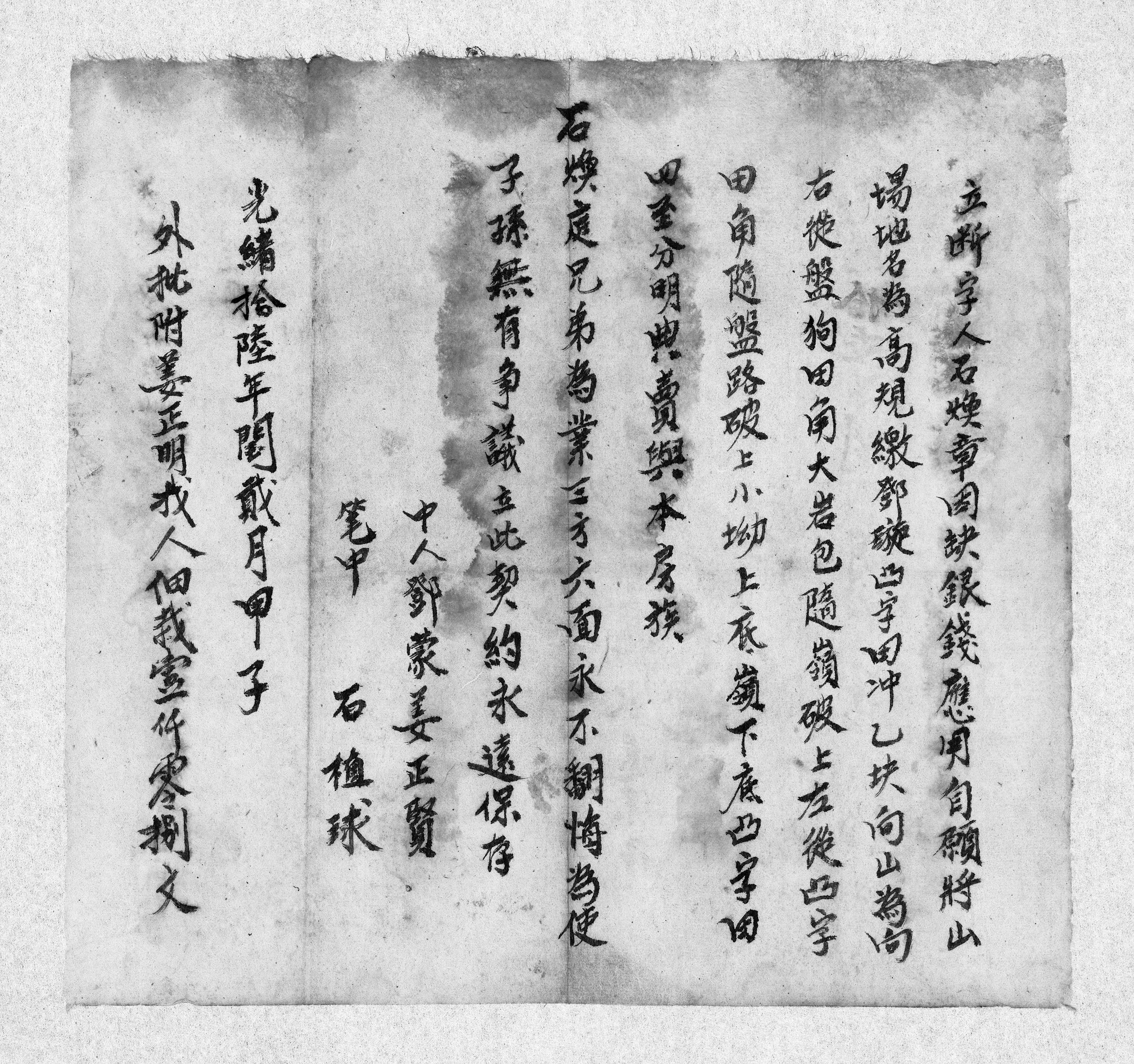石燦然斷賣田字約(光緒十九年十二月二十七日) LP-76-1