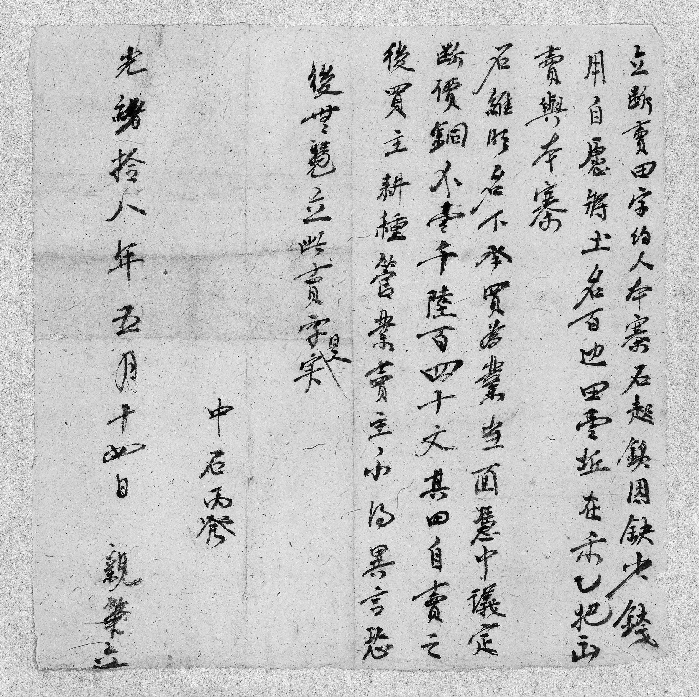 石丙霞斷賣田字約(光緒十八年五月初八日) LP-121-22