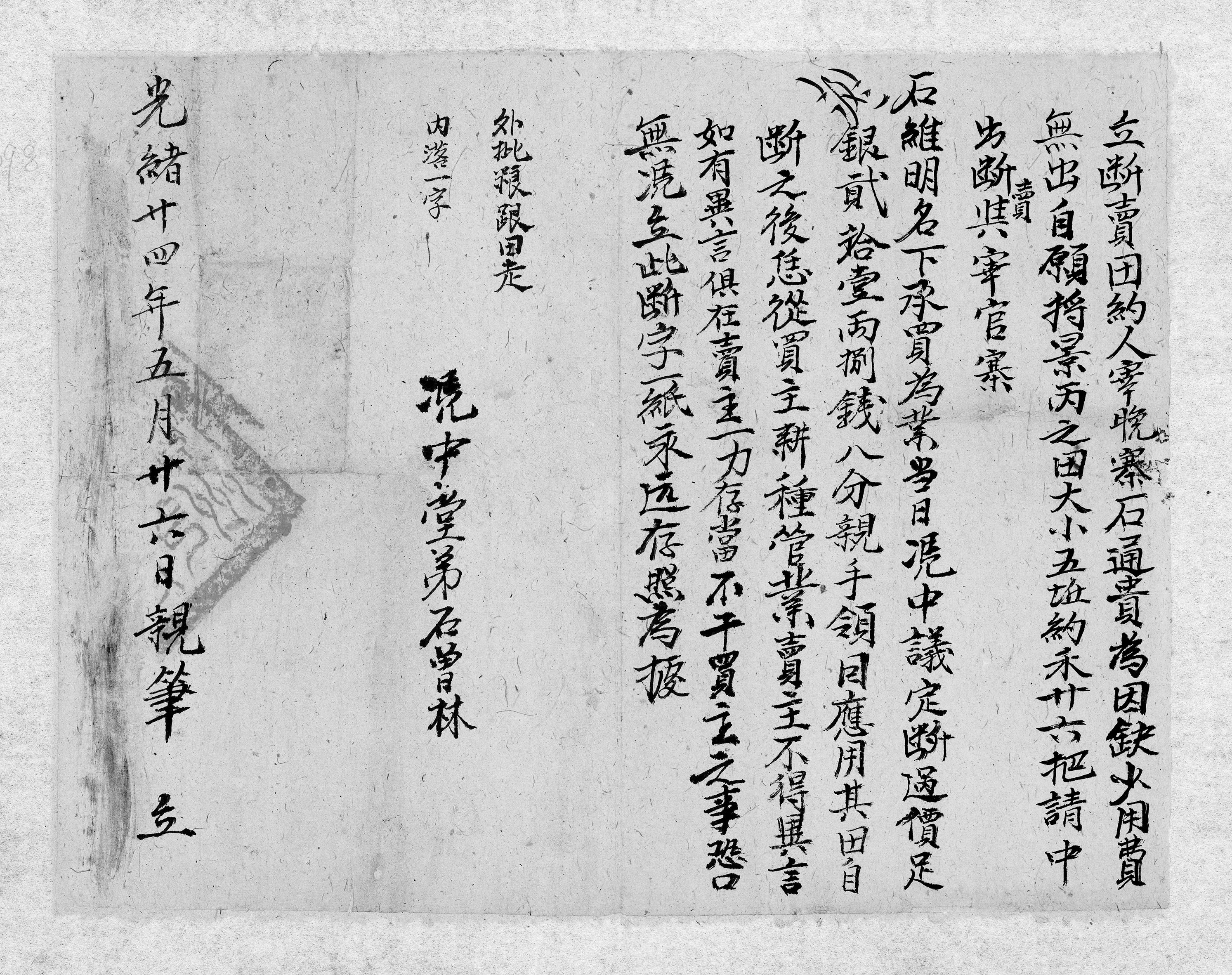 石光明斷賣田字約(光緒三年五月十六日) LP-120-31