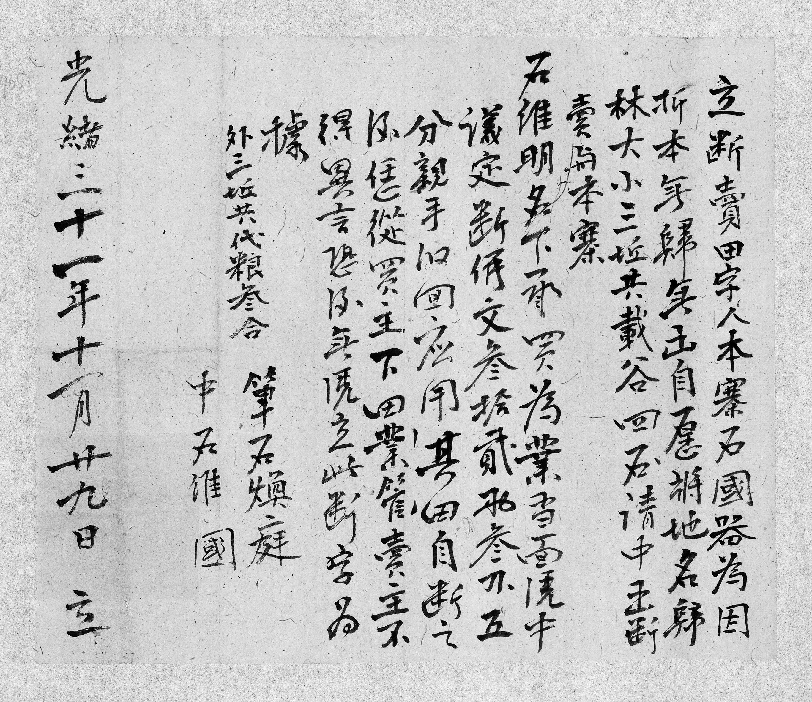 石燦然斷賣田字約(光緒十九年十二月二十七日) LP-76-1