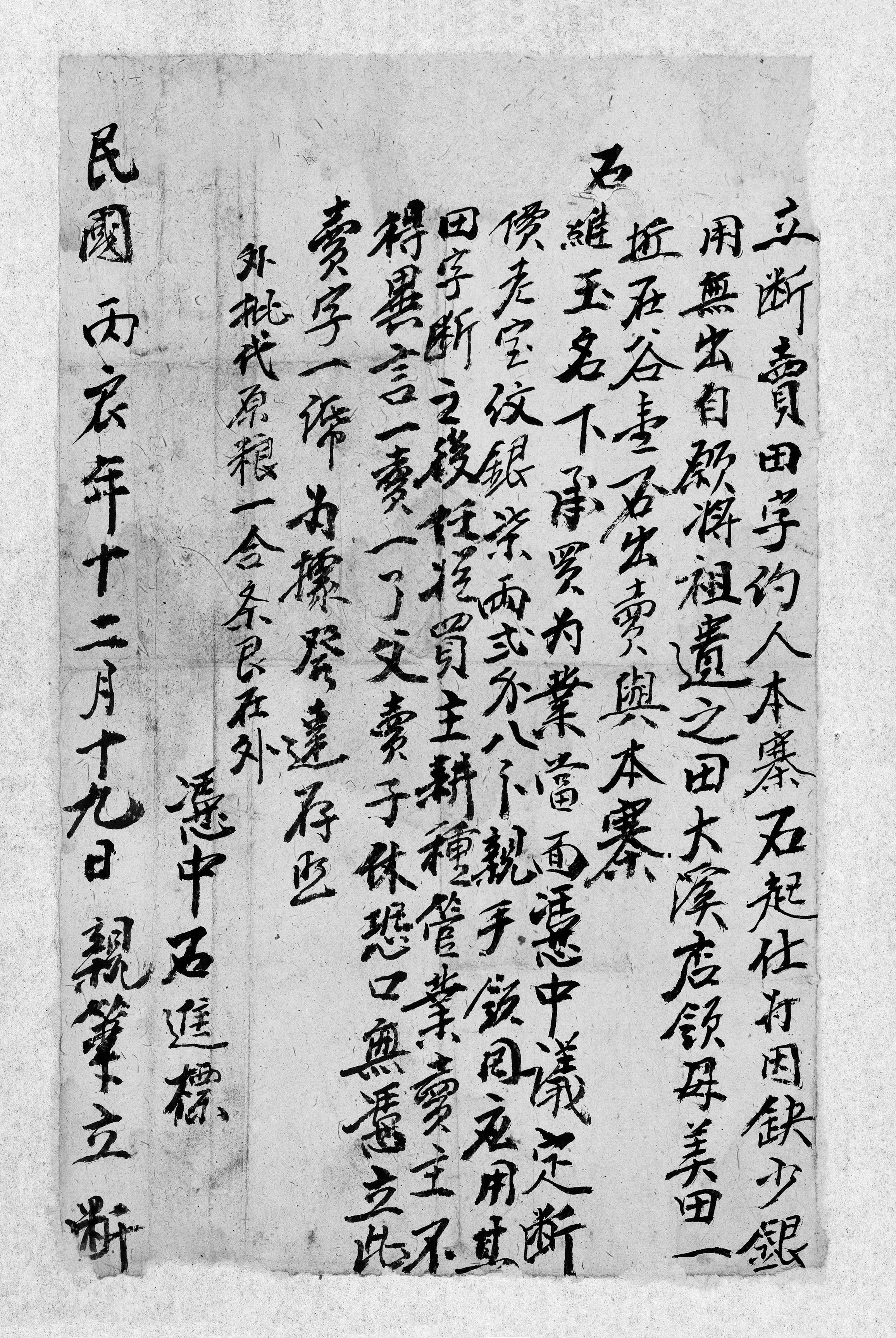 石氏娘求歲、石連邦母子二人斷賣田字約(民國五年正月二十八日) LP-76-14