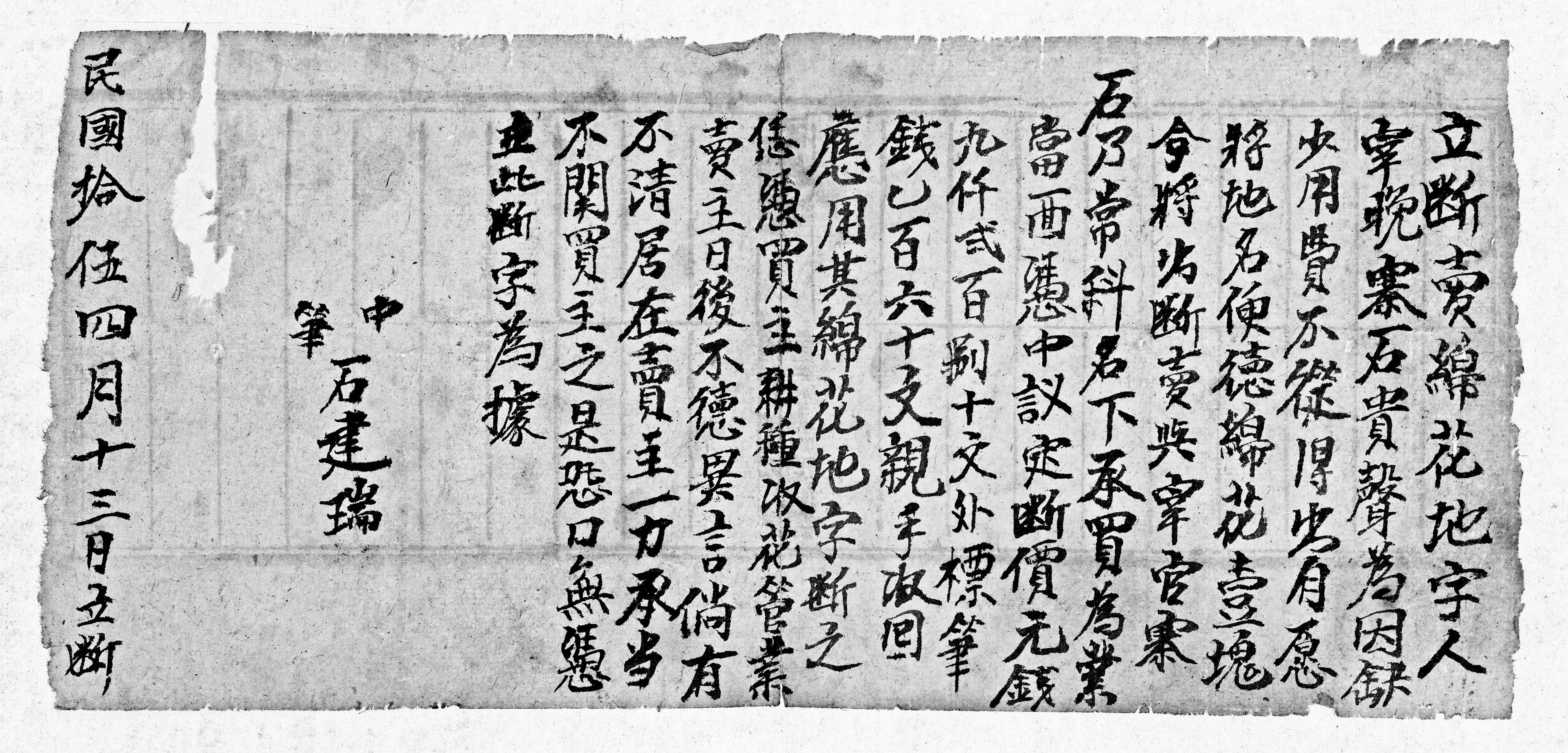 石開清斷賣棉花地字約(光緒二十年四月二十五日) LP-120-55