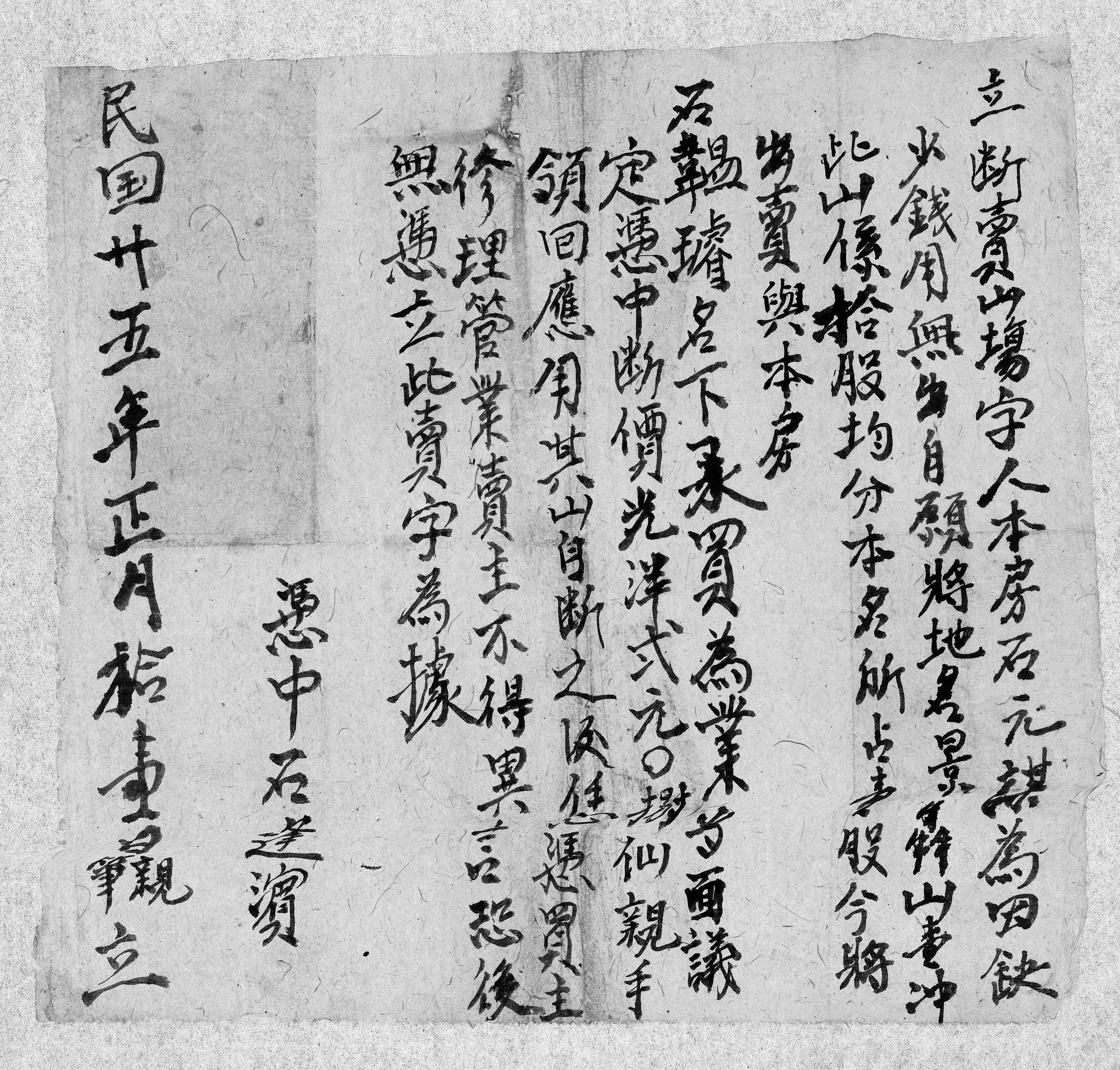 姜正昌、姜正位、姜正國等弟兄四人斷賣山場字約(民國元年十二月二十二日) LP-120-71