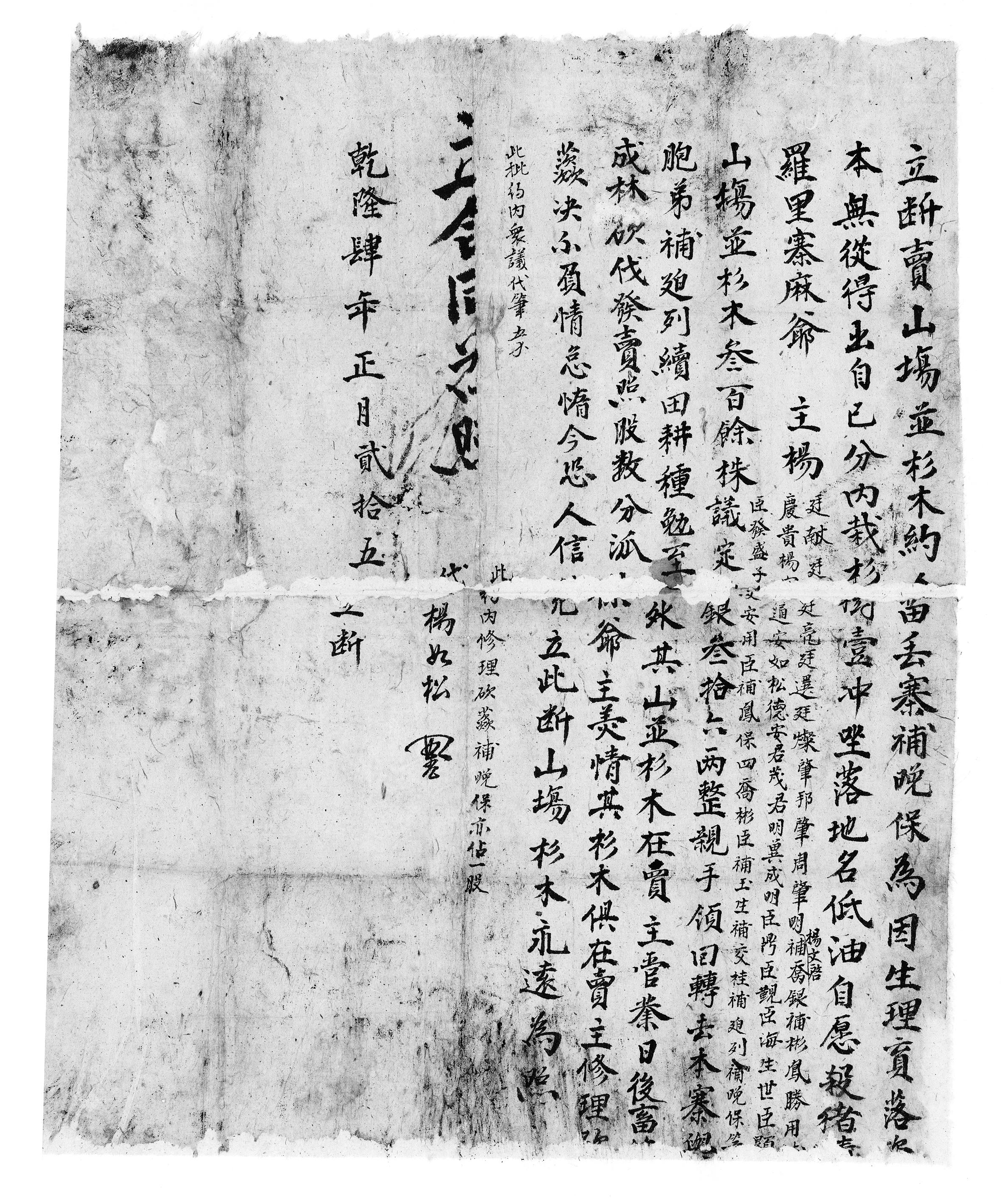 姜文顯父子三人斷賣山場杉木字約(道光三十年十月十五日) LP-120-3