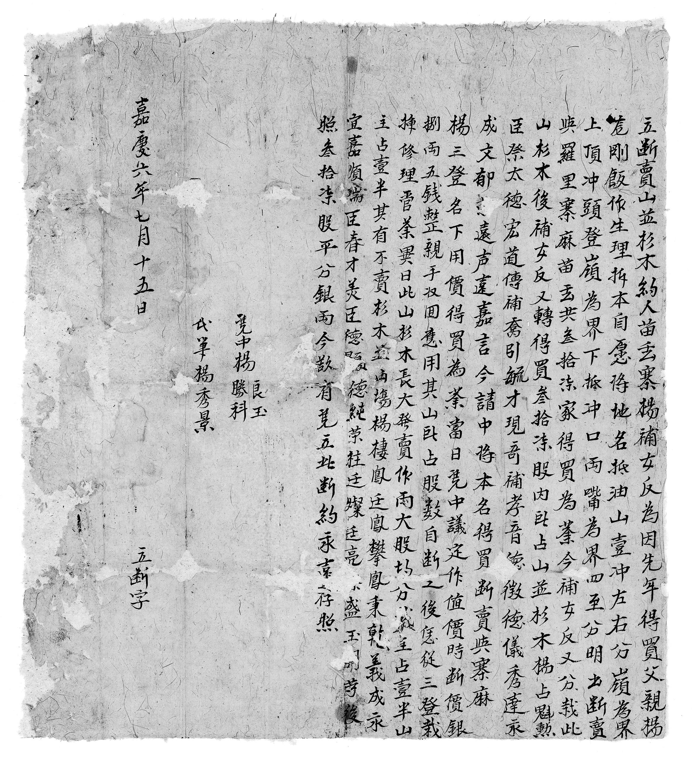 姜文顯父子三人斷賣山場杉木字約(道光三十年十月十五日) LP-120-3