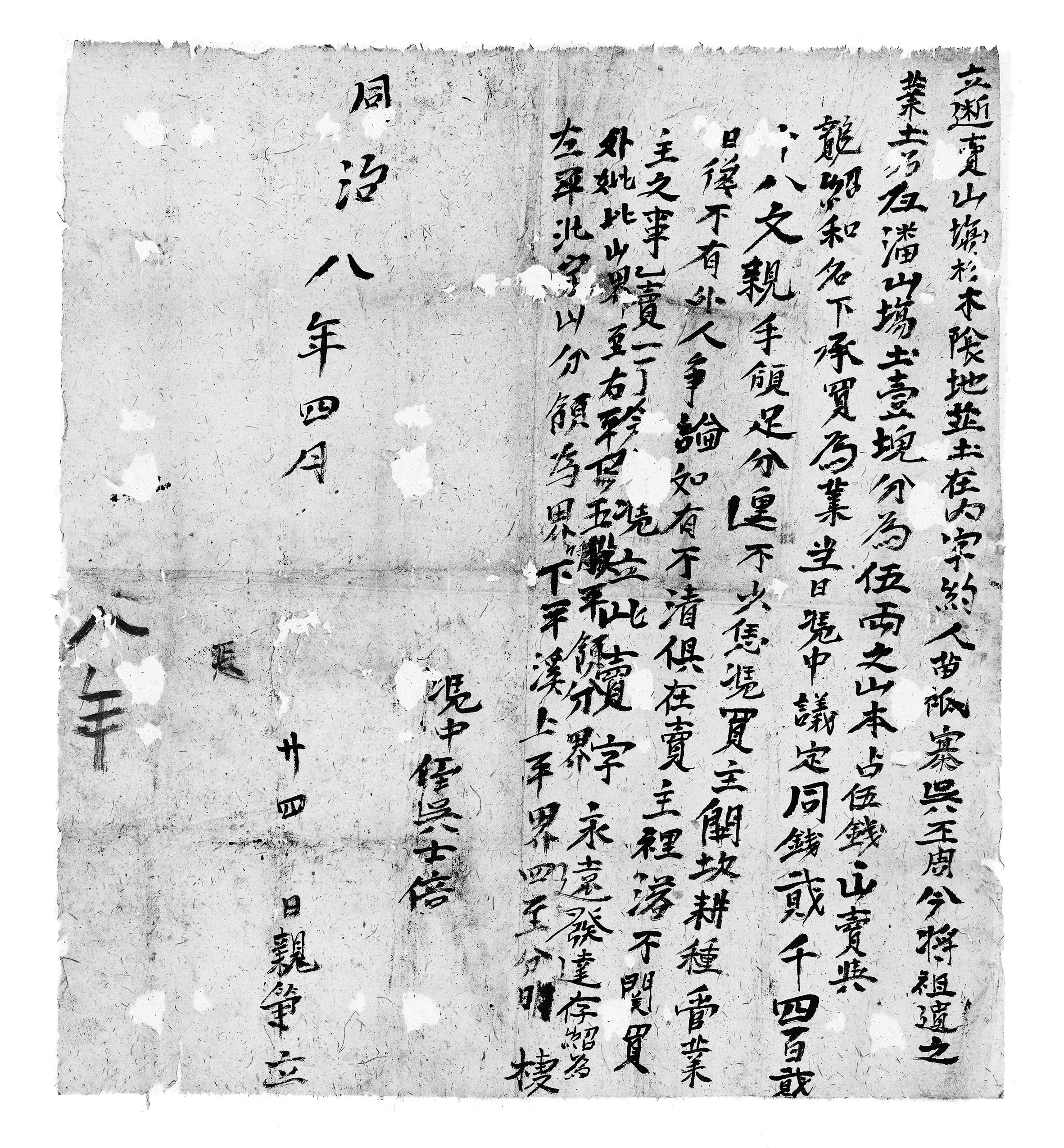 楊老宗、楊老發、楊老六等五人斷賣田約(同治三年正月二十日) LP-120-8