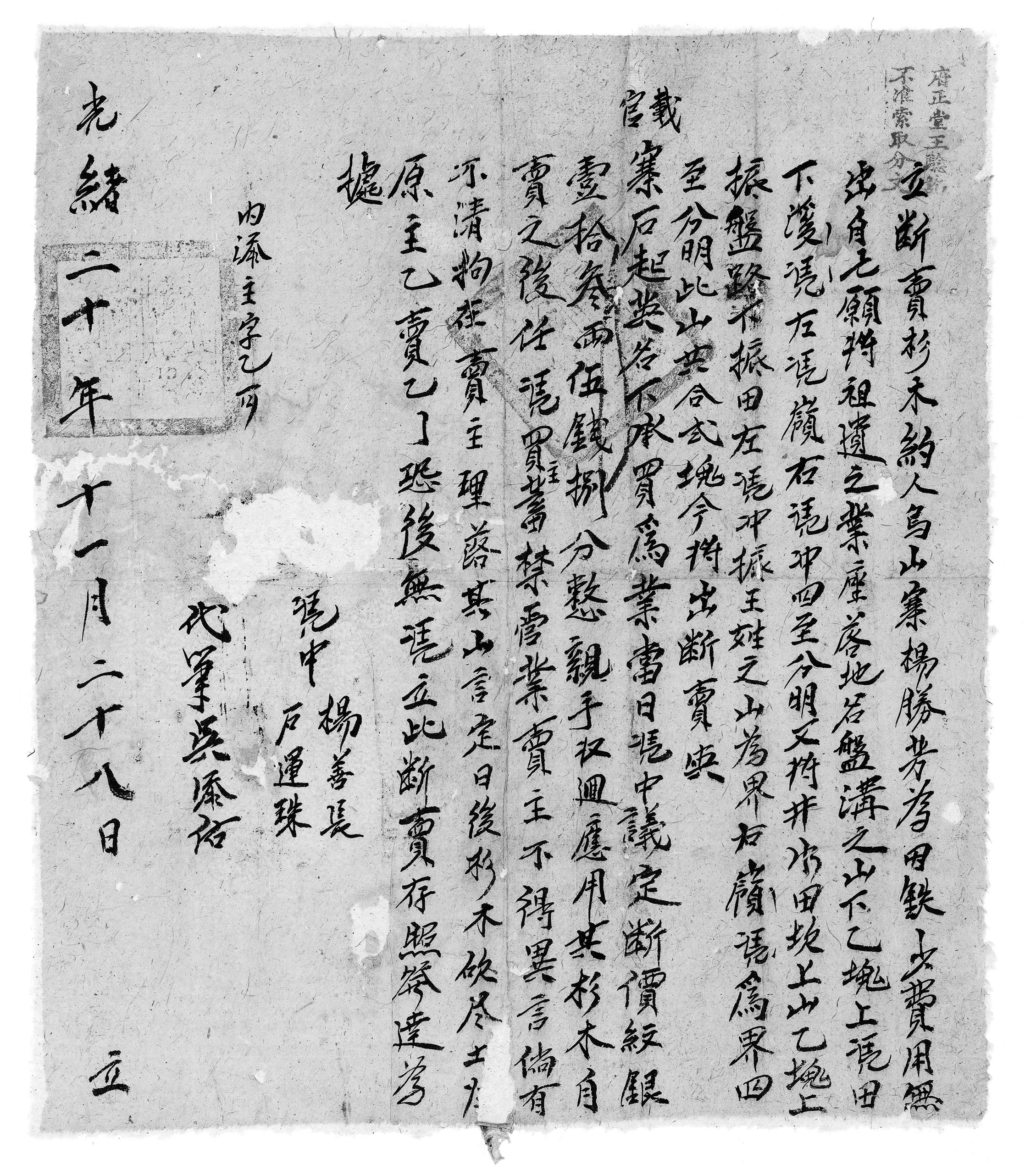 楊通興斷賣杉木約(光緒二十四年六月初六日) LP-80-28