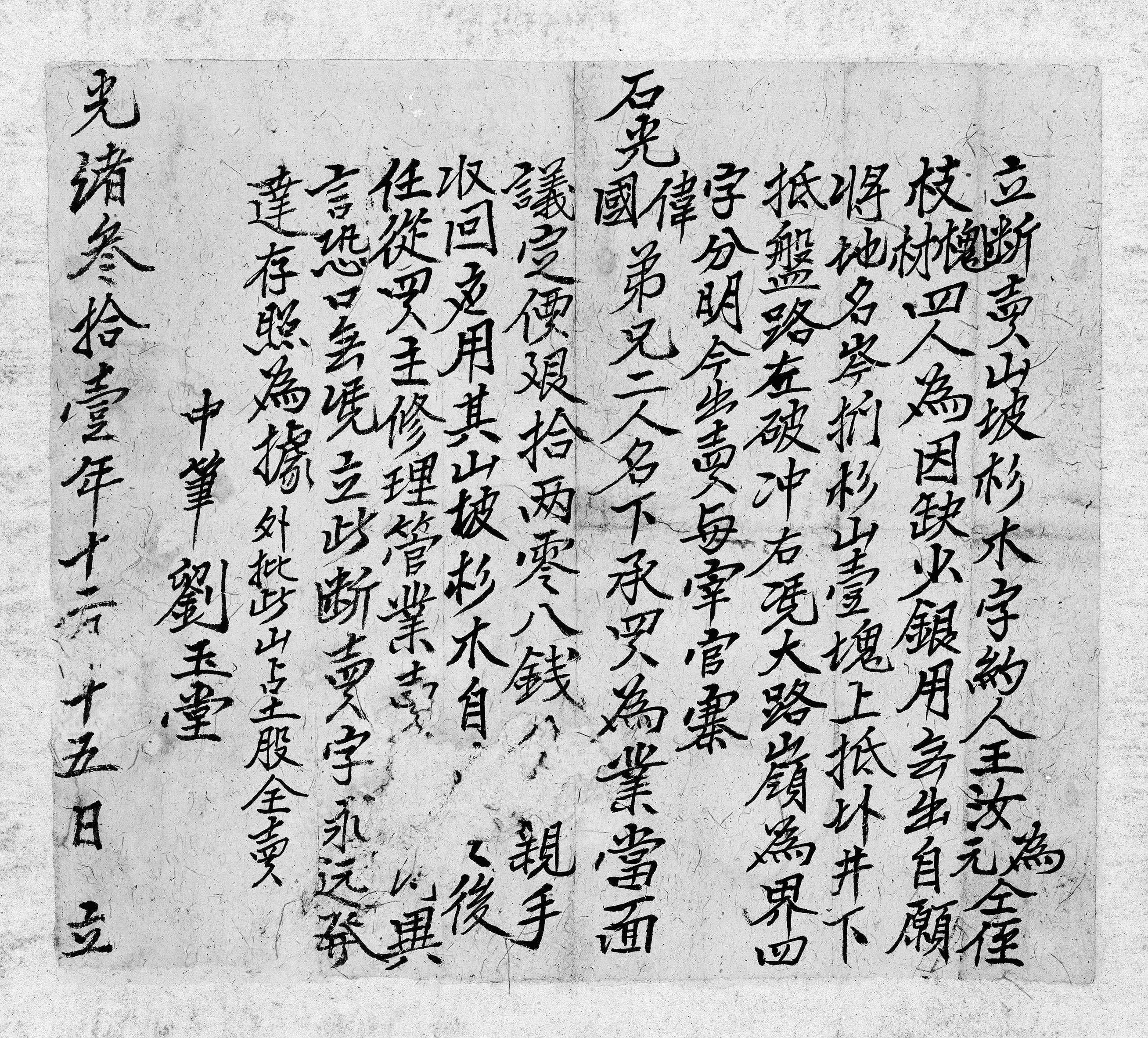 石玦富斷賣田字約(光緒十二年十一月十三日) LP-120-43